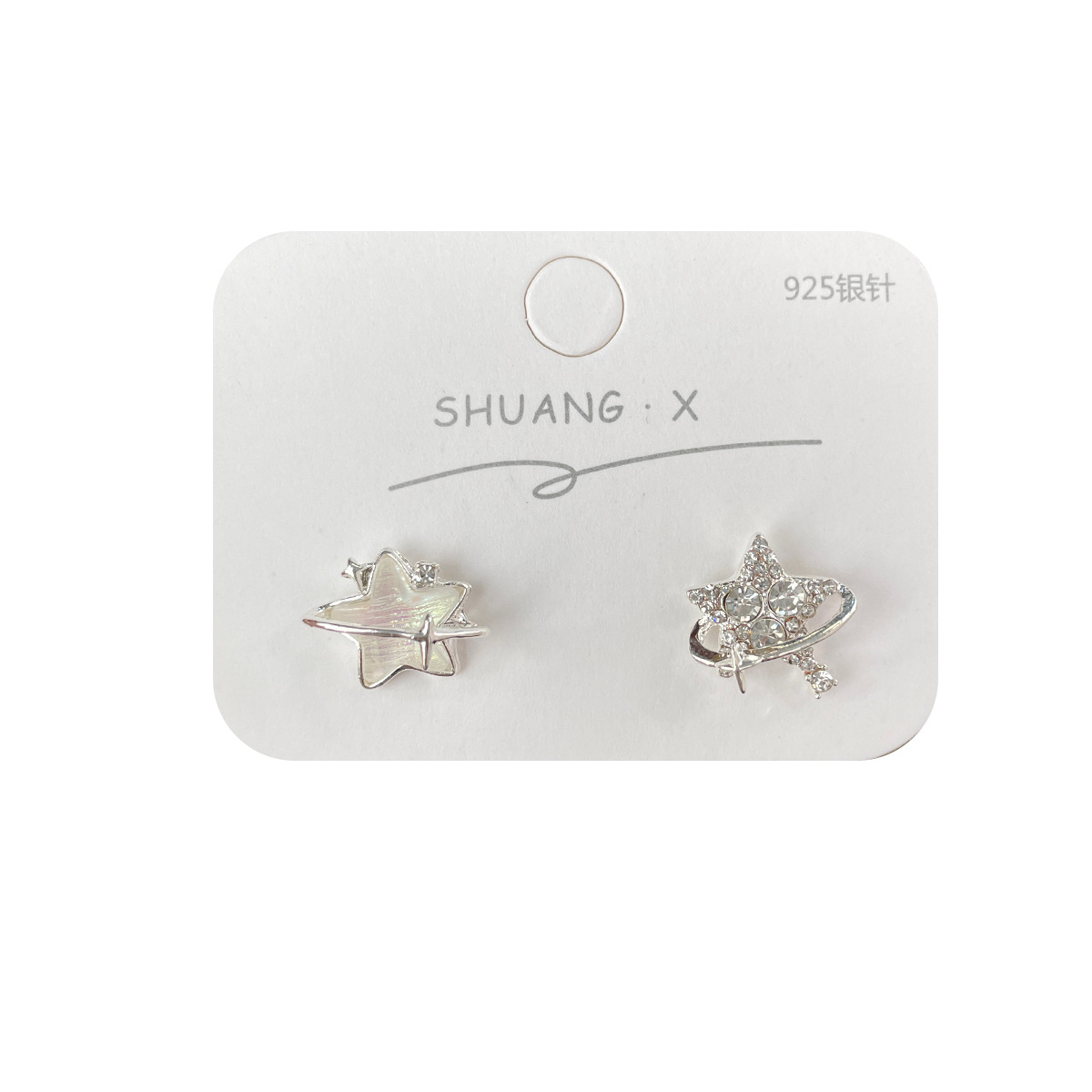 新款个性不对称带钻渐变星星耳钉女潮银针超闪小众精致设计感耳饰
