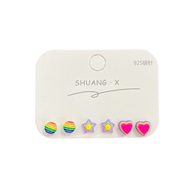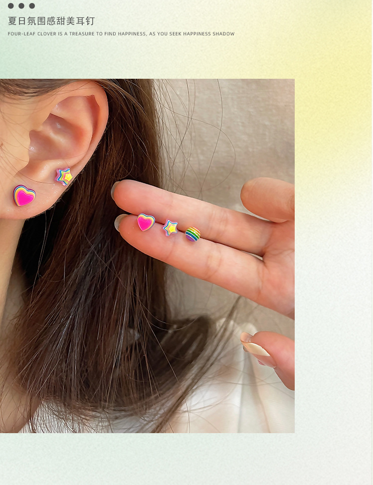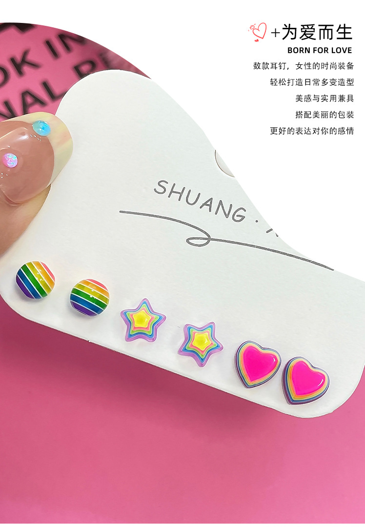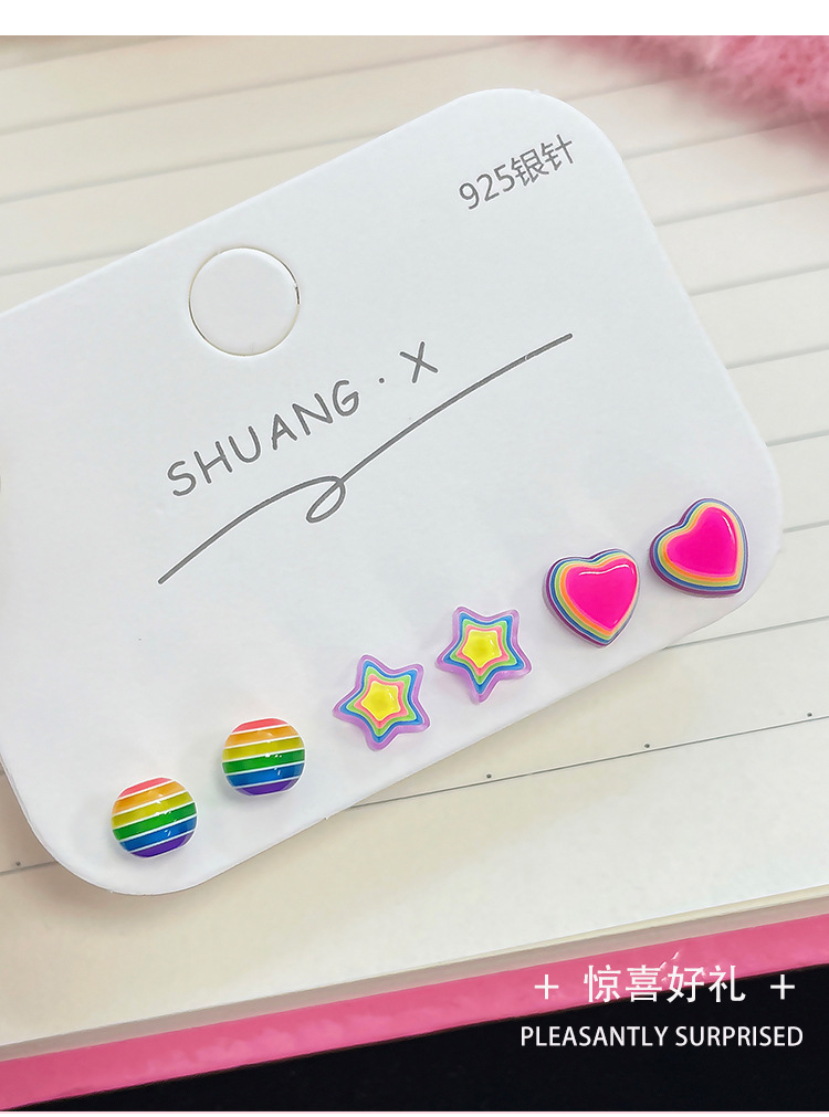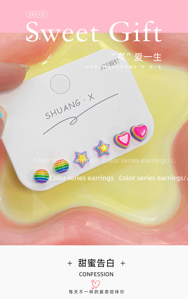 新款彩虹糖果星星耳钉女银针树脂小巧可爱小众设计感多巴胺耳饰