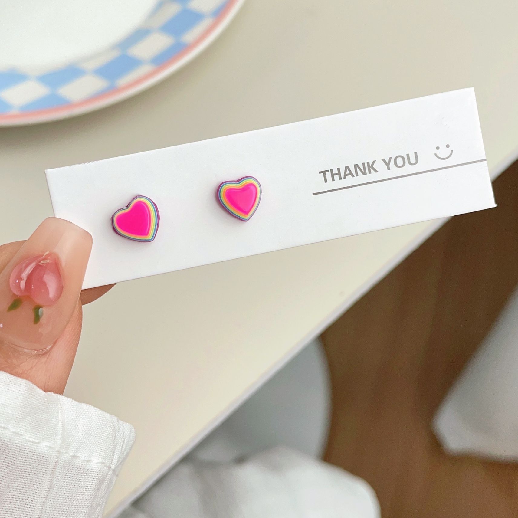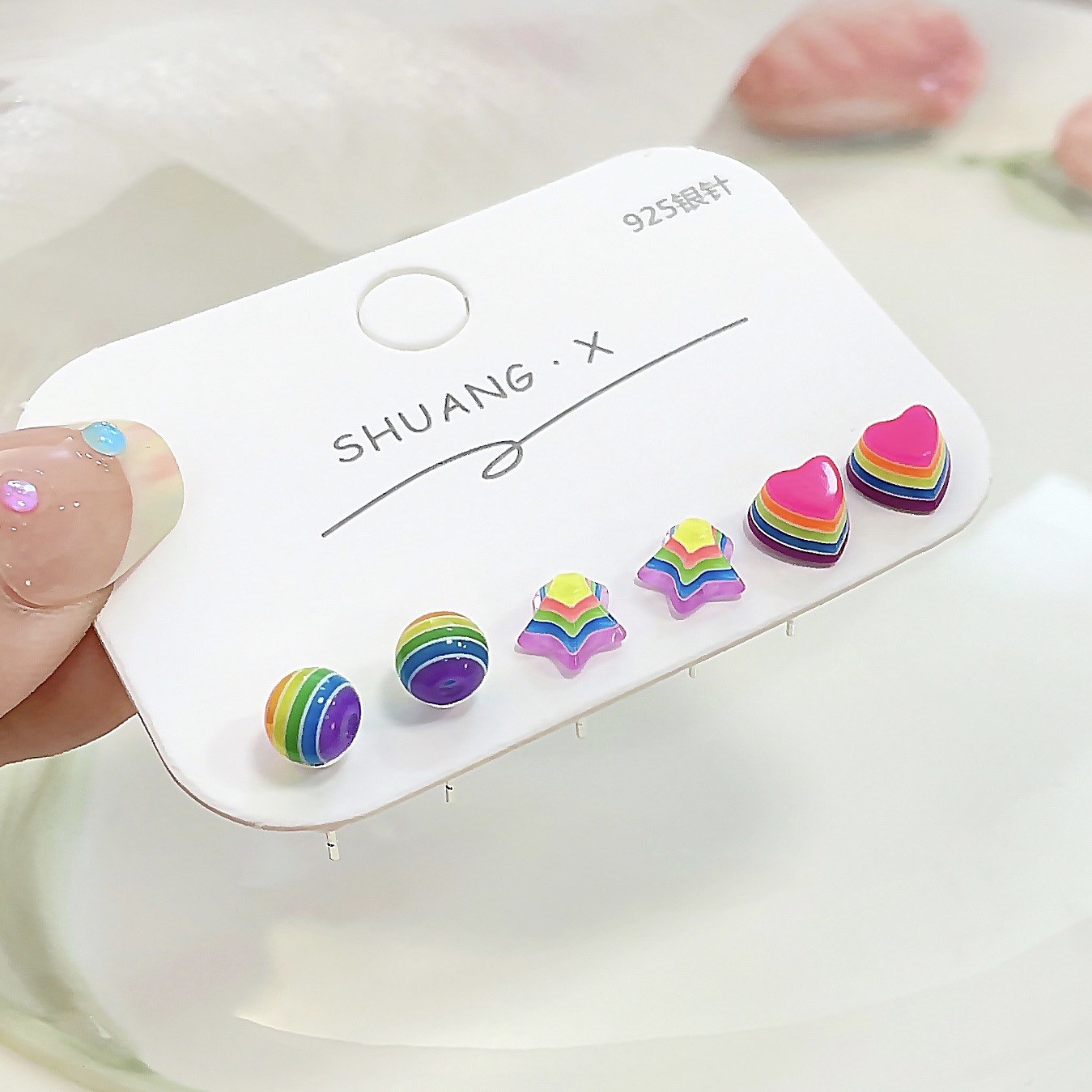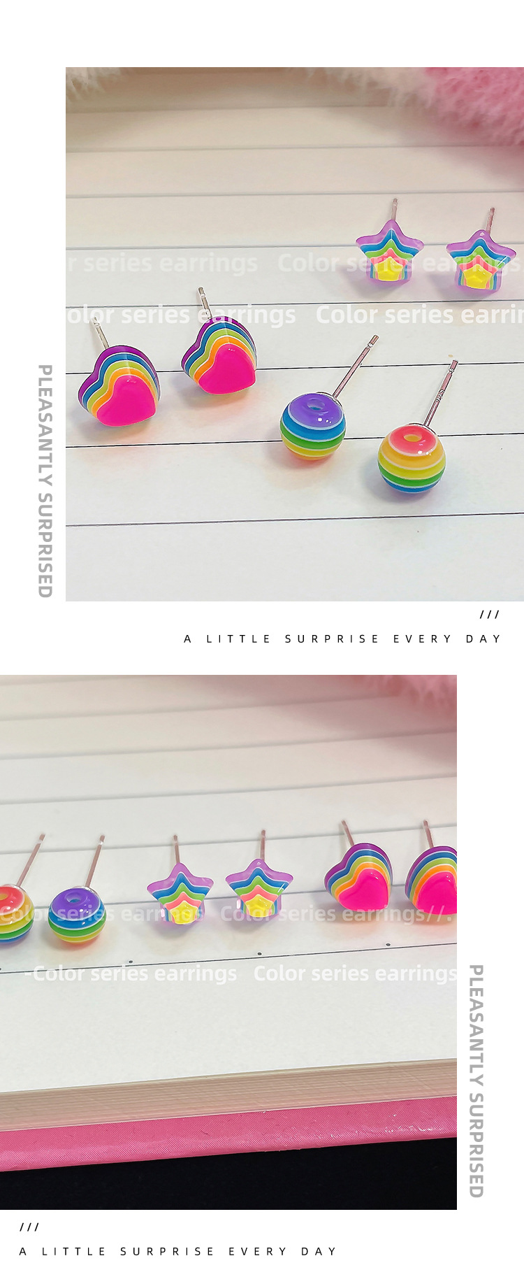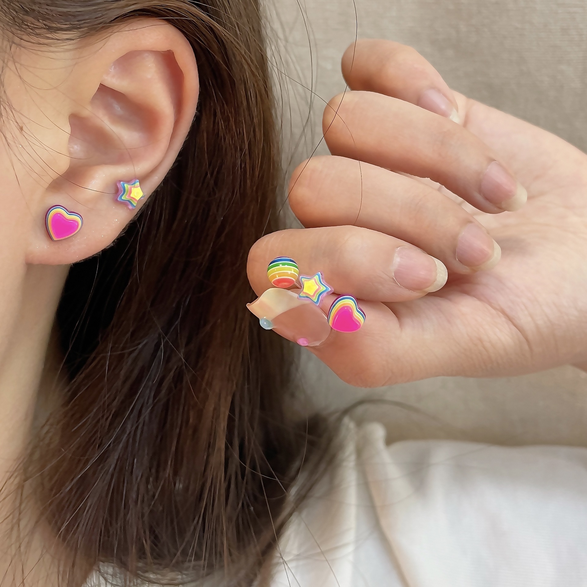 新款彩虹糖果星星耳钉女银针树脂小巧可爱小众设计感多巴胺耳饰