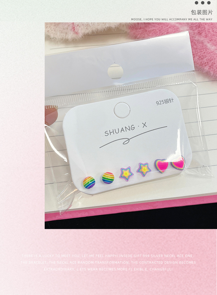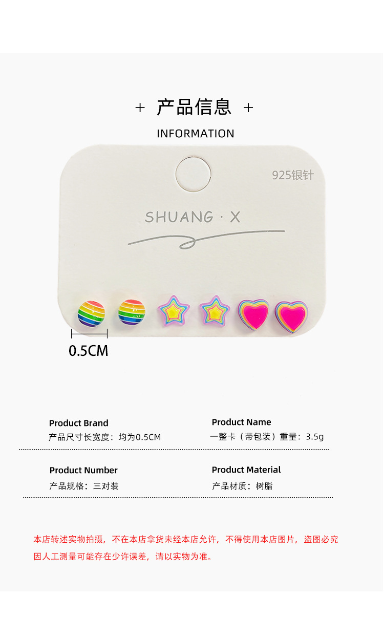 新款彩虹糖果星星耳钉女银针树脂小巧可爱小众设计感多巴胺耳饰 投诉