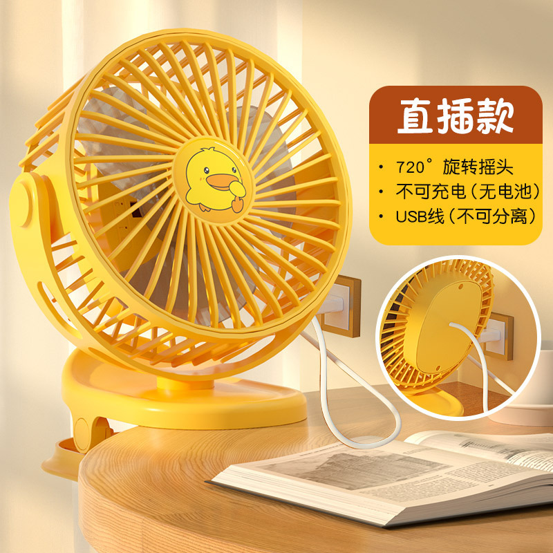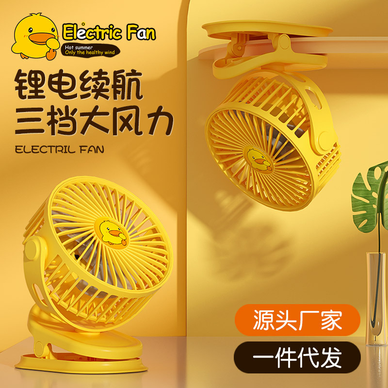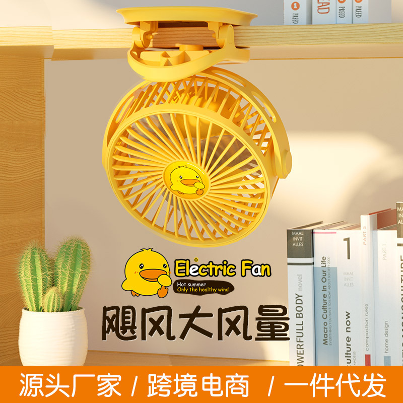 抖音直播黄鸭便携usb充电小夹扇多功能壁挂电风扇大风力办公宿舍