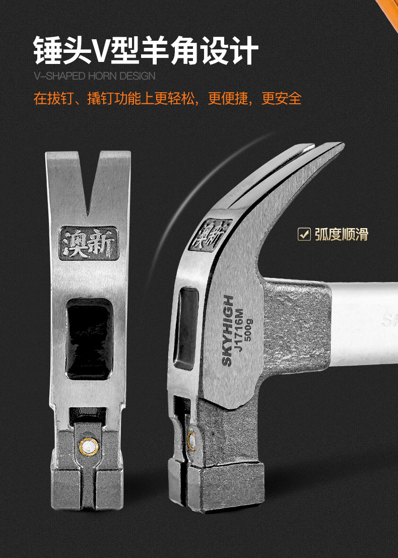 澳新木工锤子正品羊角锤工具纯特钢家用小榔头起钉锤铁锤一体奥新