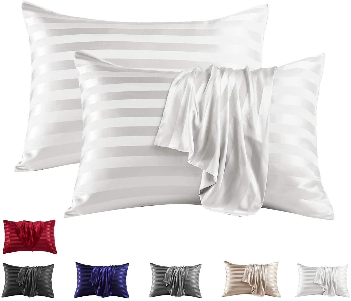 该产品在纯色基础款的面料上采用提花工艺进行制作,一般能够提出缎条的布料要求都更高,有轻薄、柔顺、弹性、舒适、光泽等特点,丝质缎面枕套可减少对美丽头发的摩擦,防止缠结和打结,同时保护头发,减少头发断裂,有效保持发型;为肌肤提供柔软光滑的纹理,保护皮肤免受可能变成深层皱纹的面部睡眠线。