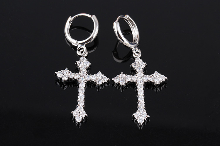 十字架耳环 镶嵌优质锆石 韩版时尚耳饰耳坠白色个性十字架耳环 投诉