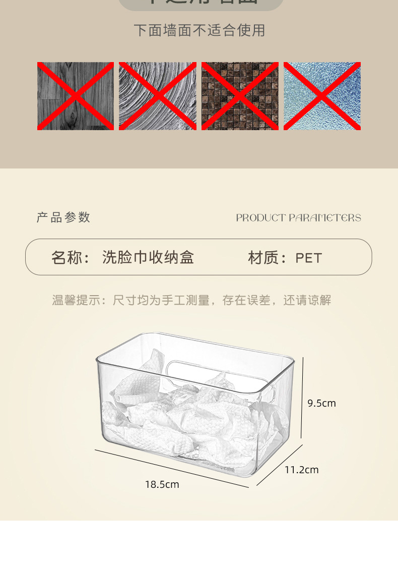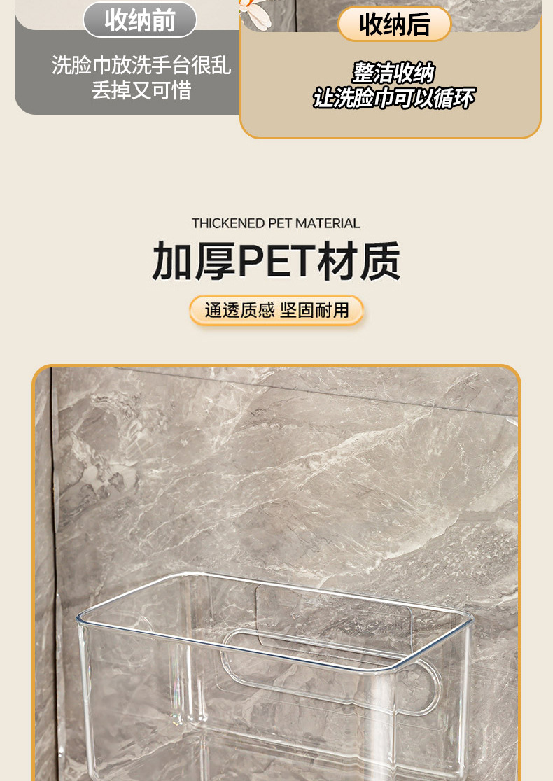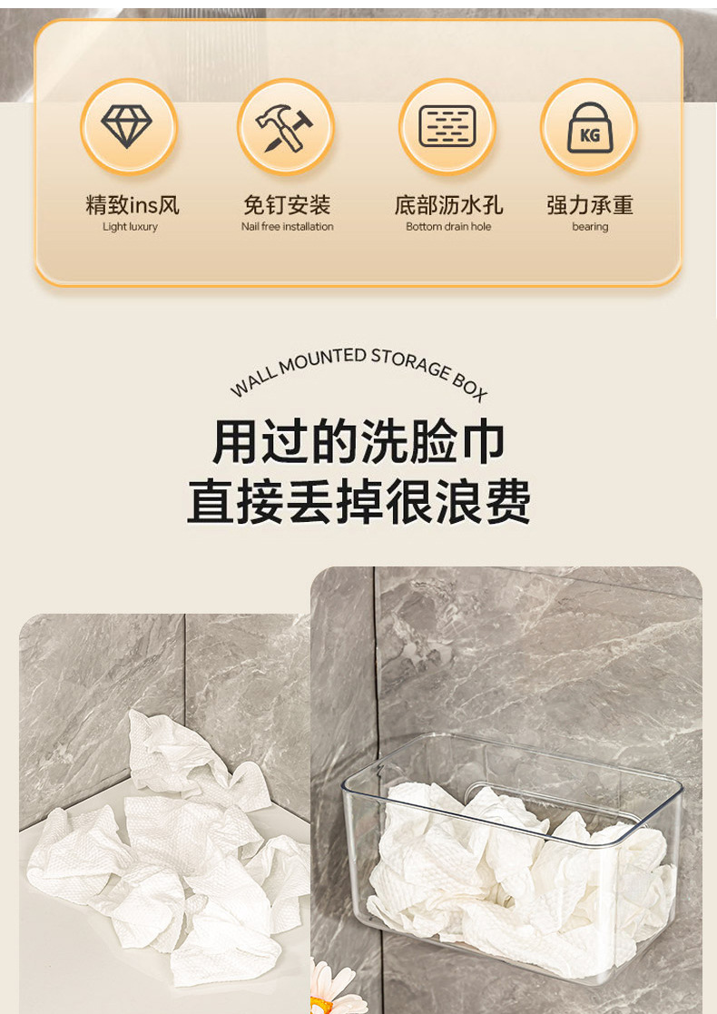 2216洗脸巾收纳盒壁挂废弃棉柔擦脸巾浴室纸巾收纳盒卫生间置物架 投诉