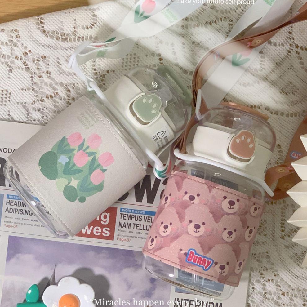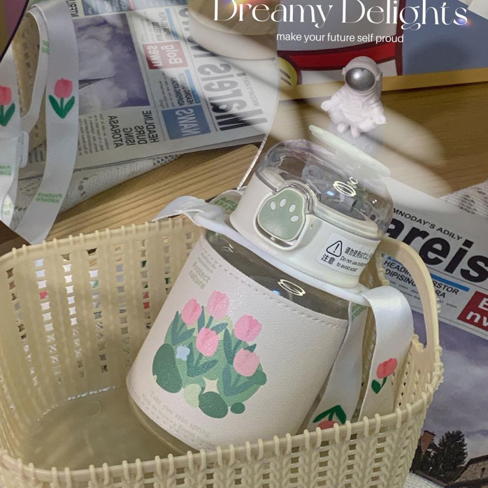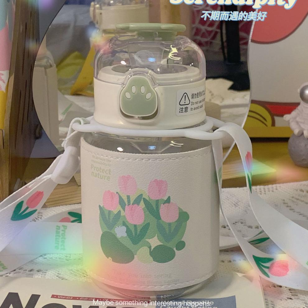 郁金香ins高颜值吸管玻璃杯新款便携大容量简约少女心学生杯