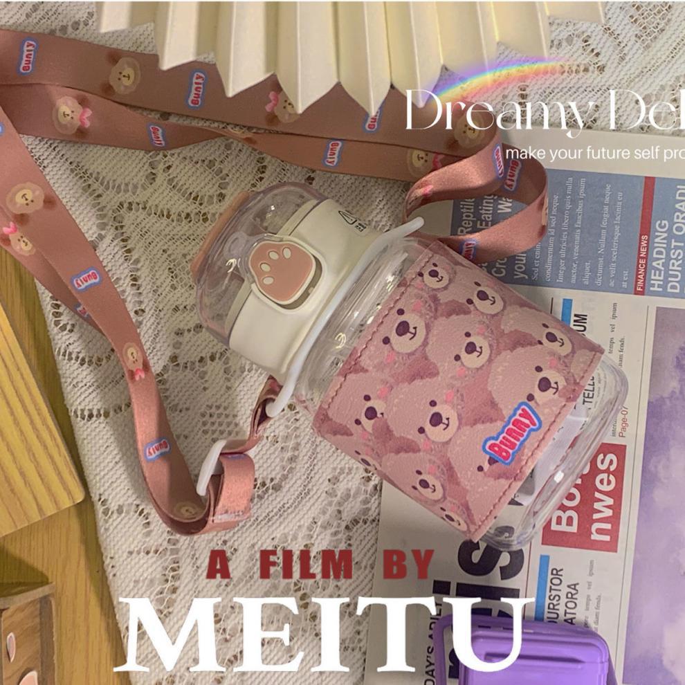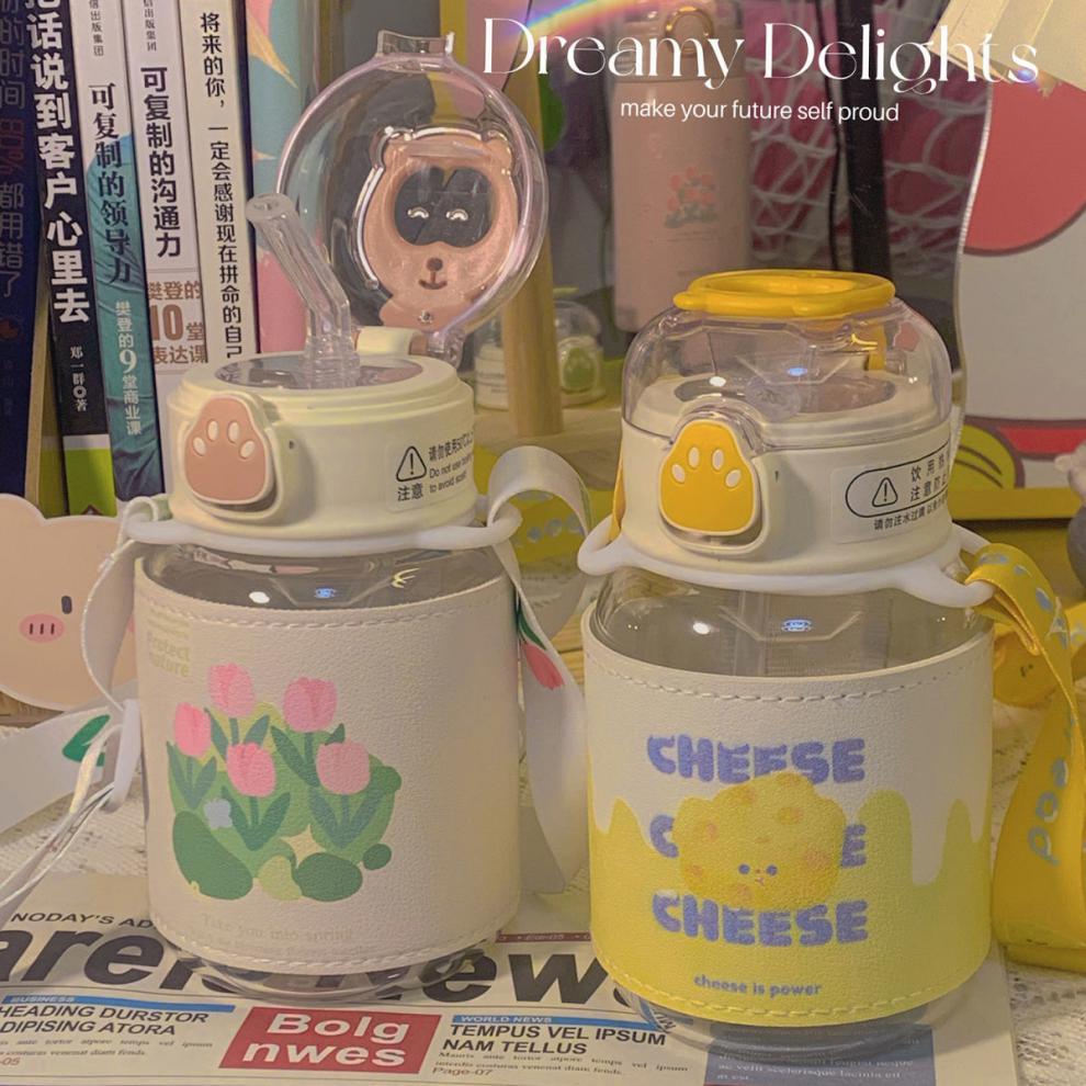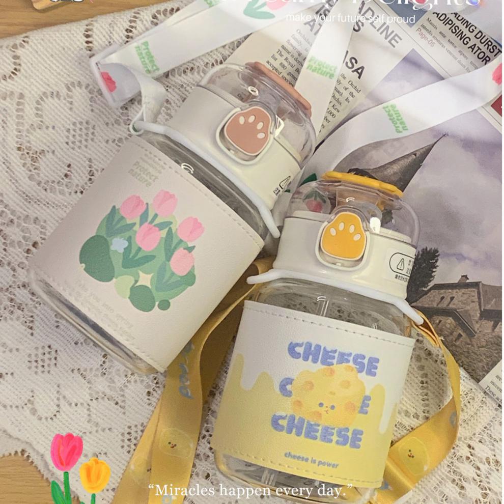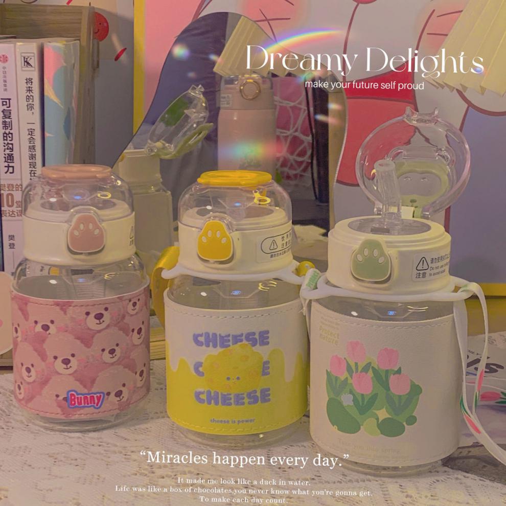 郁金香ins高颜值吸管玻璃杯新款便携大容量简约少女心学生杯