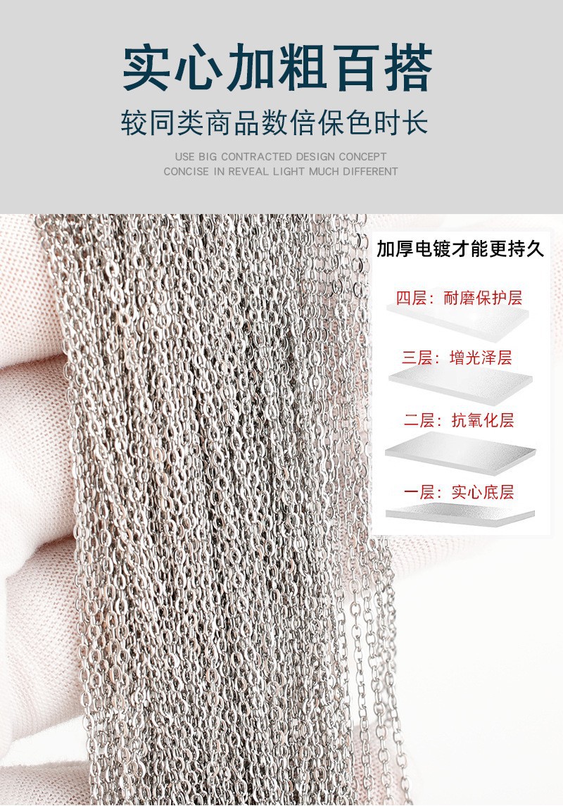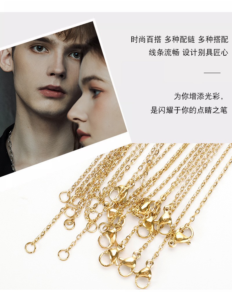 银色金色电镀项链DIY饰品45cm不锈钢链条 O字压扁链批角十字链 English | 投诉
