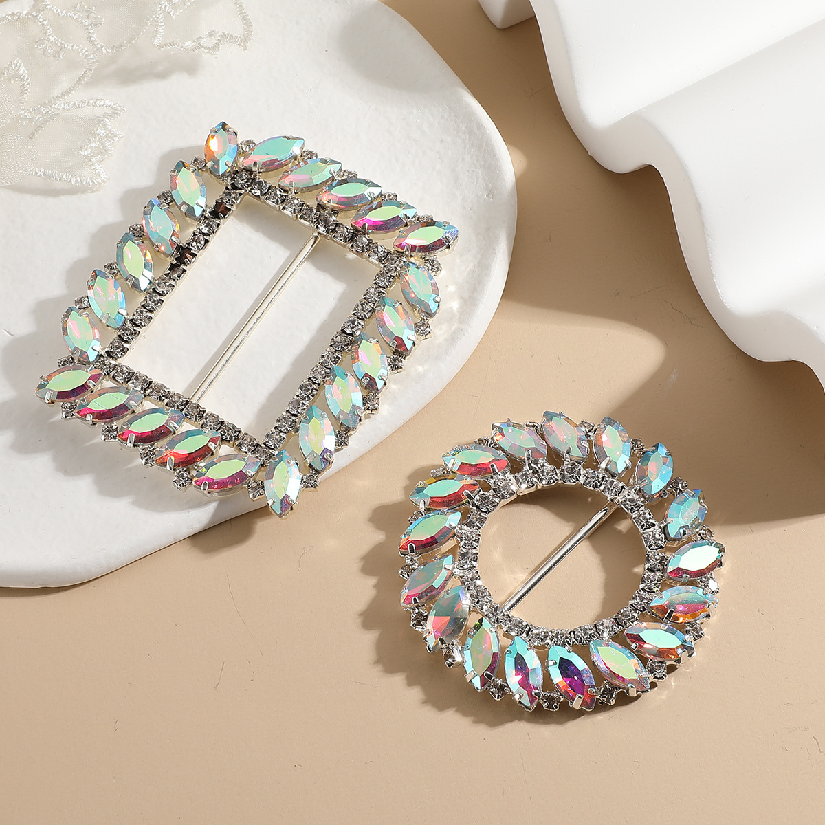 热销爆款AB彩玻璃鞋花腰扣DIY衣服鞋子装饰品圆形金属日字扣大衣