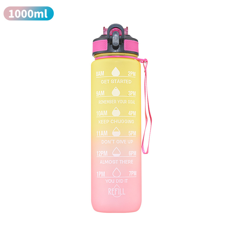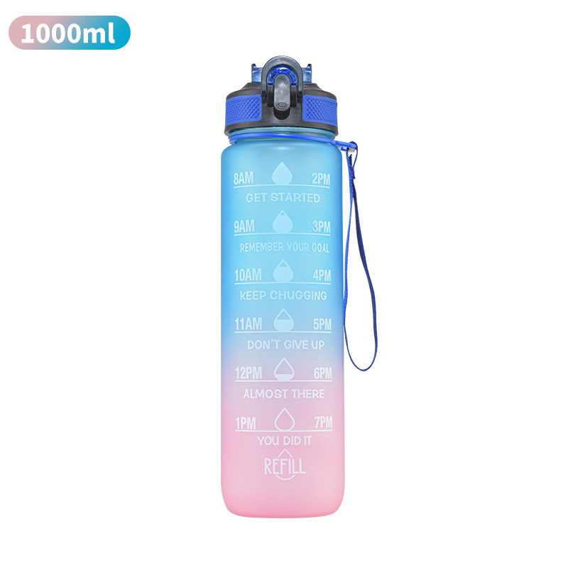 跨境厂家爆款亚马逊渐变色运动水壶大容量高颜值便携塑料吸管杯子带刻度户外运动水杯