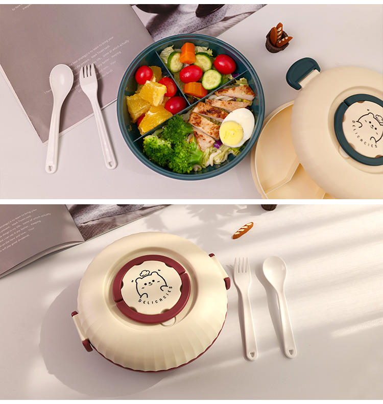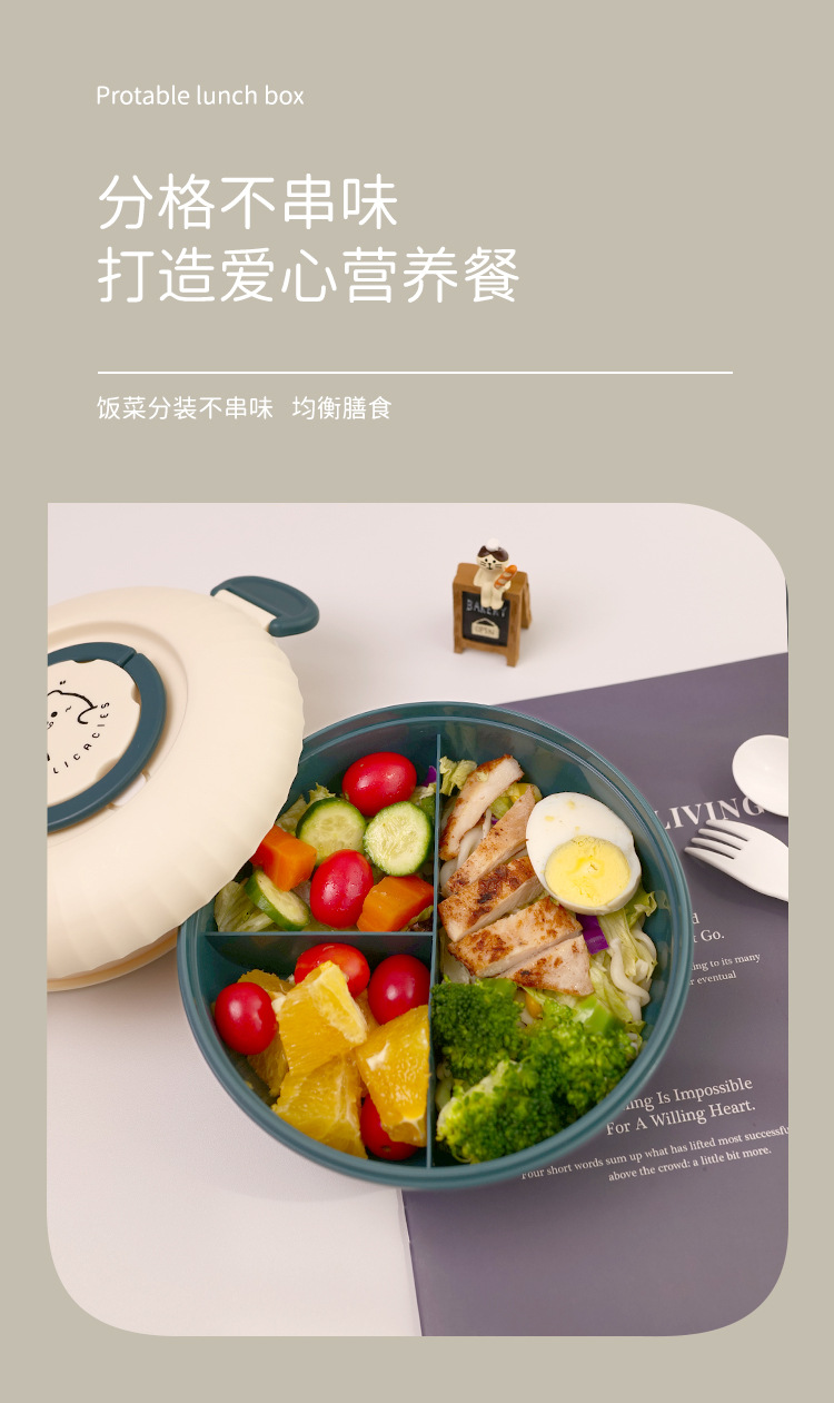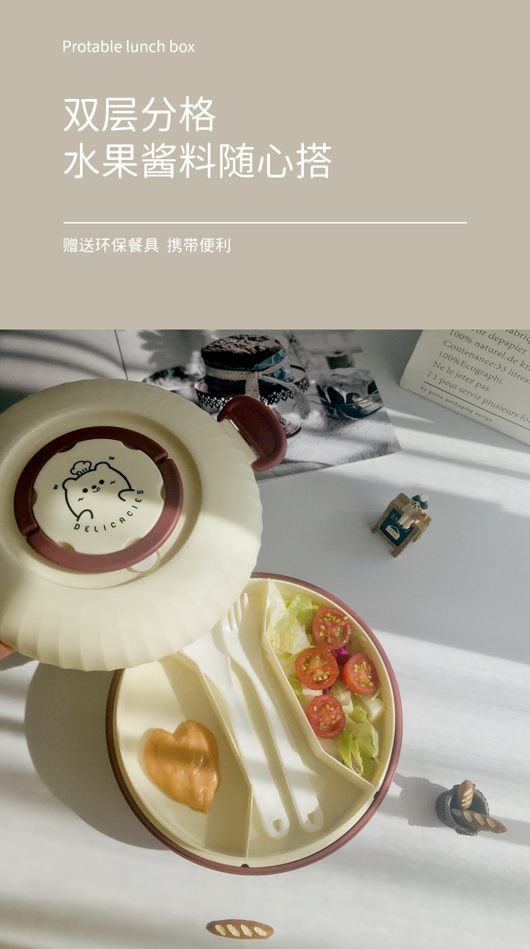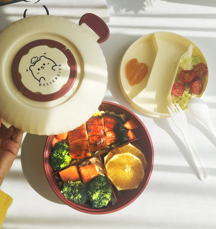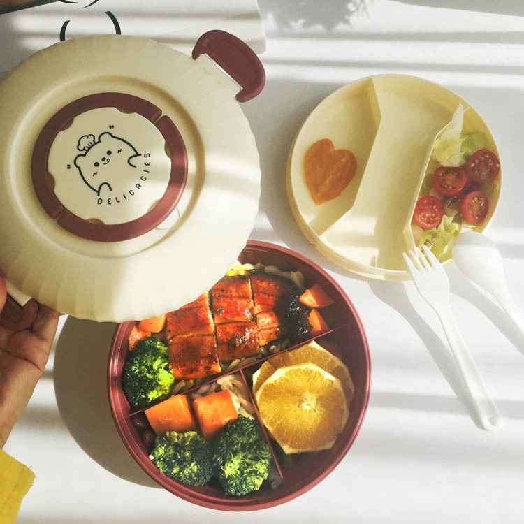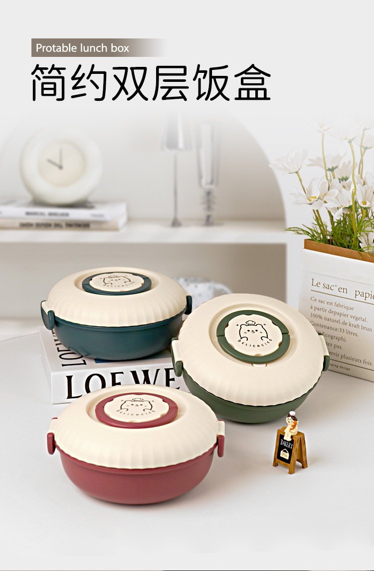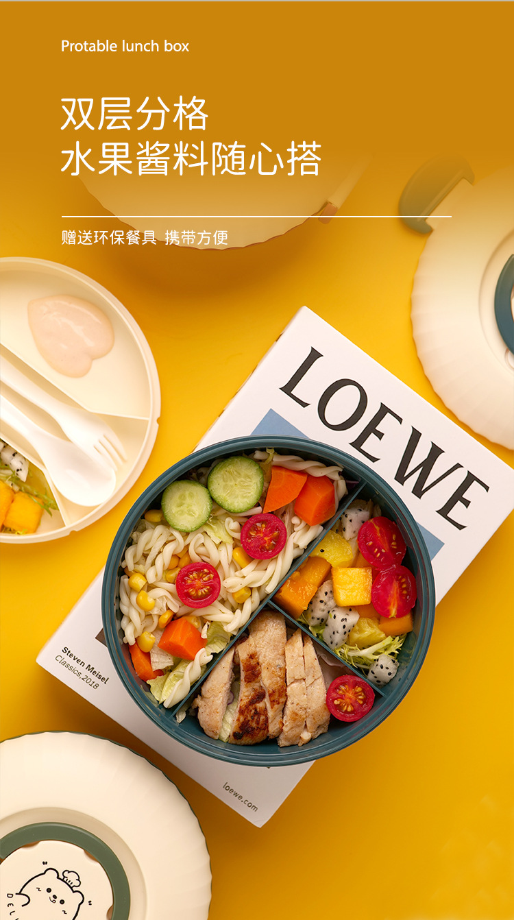 双层便当盒1.2L带酱料分格可微波加热学生上班族饭盒便携餐盒饭盒