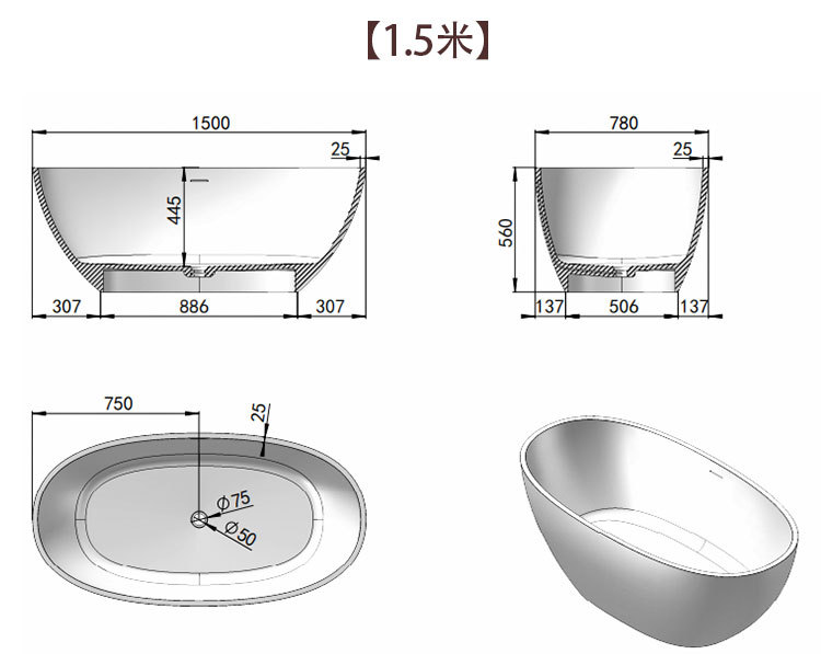 | (厚边)亮光白色1500*780*560mm | ¥462500 | 499个可售 |