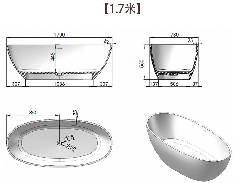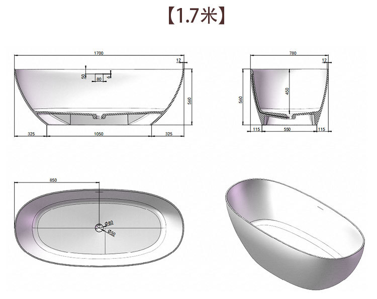 | (厚边)亮光白色1700*780*560mm | ¥487500 | 498个可售 |