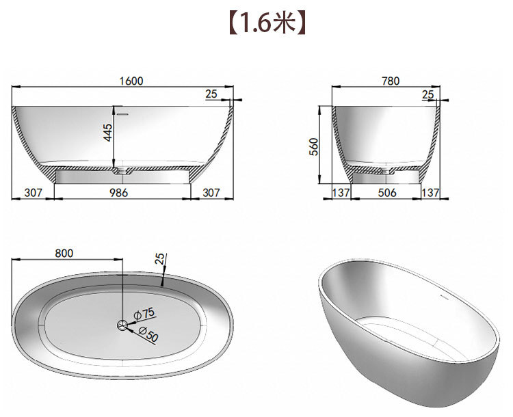 | (厚边)哑光白色1600*780*560mm | ¥450000 | 495个可售 |
