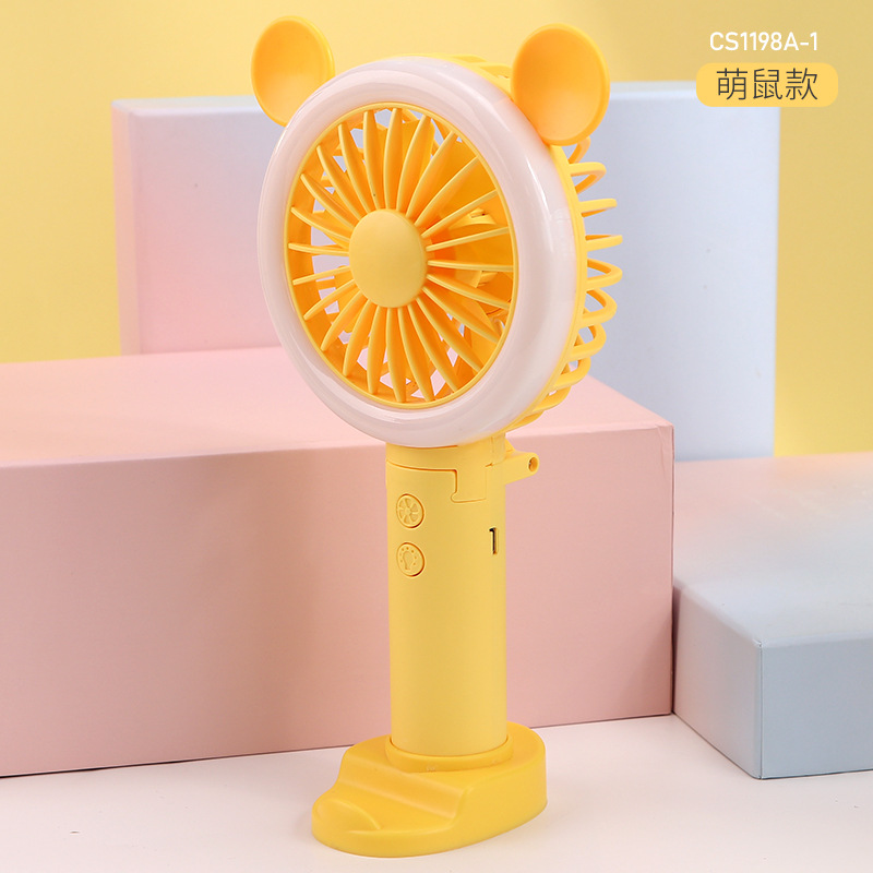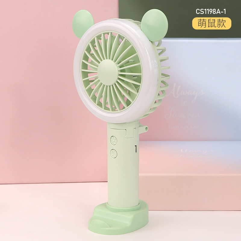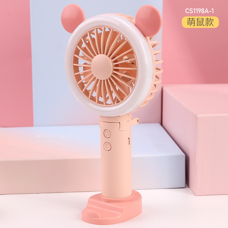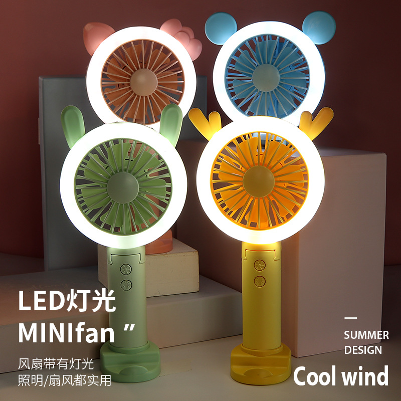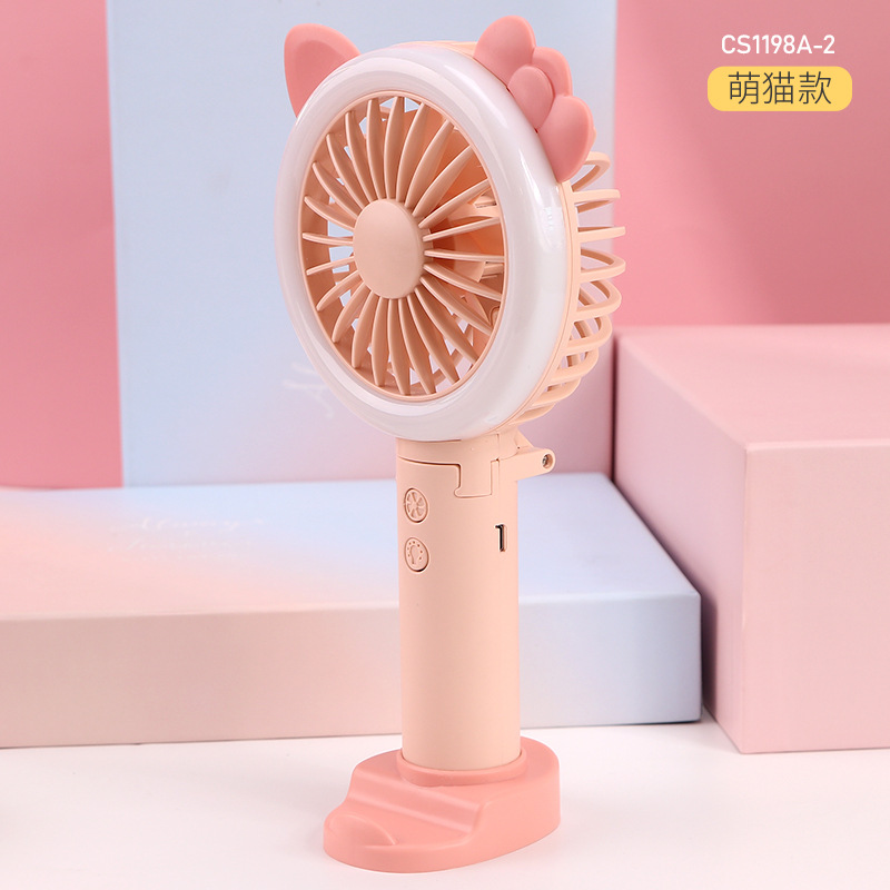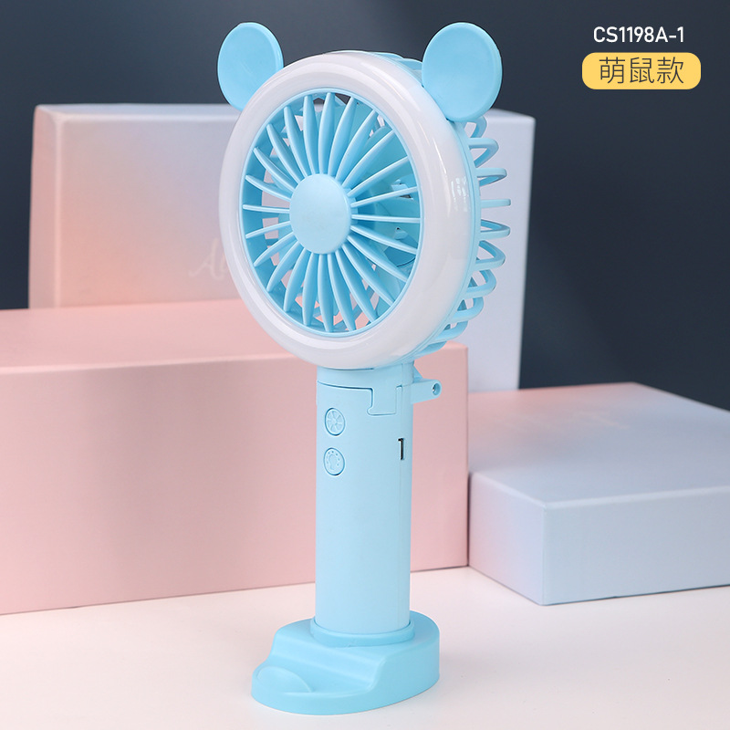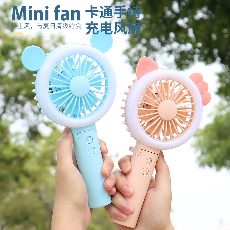 迷你usb充电小风扇桌面手持小风扇带LED小夜灯 折叠便携手持风扇
