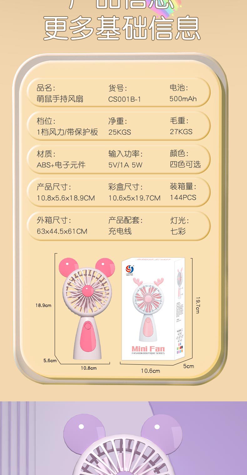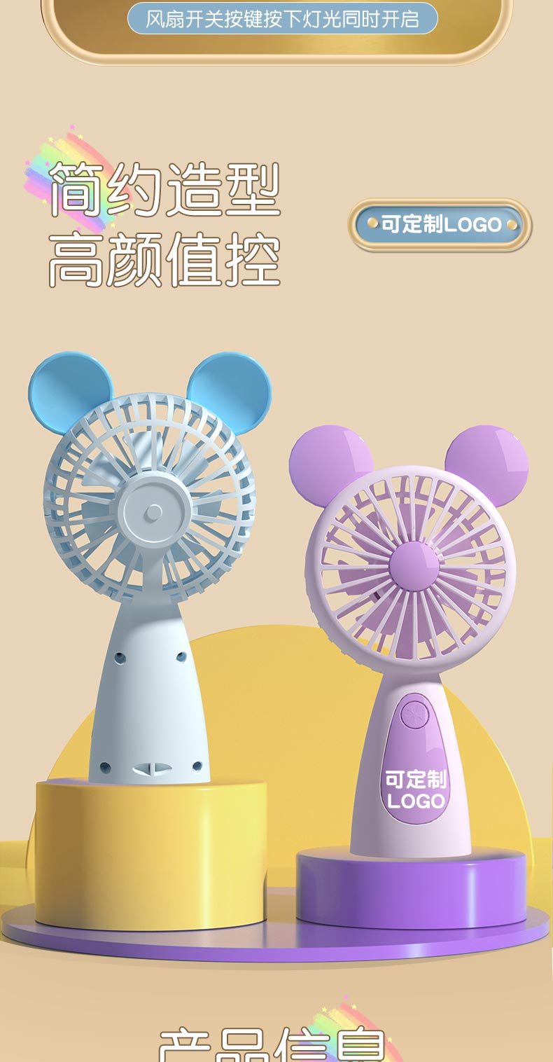 【产品名称】:卡通USB充电小风扇带七彩灯光