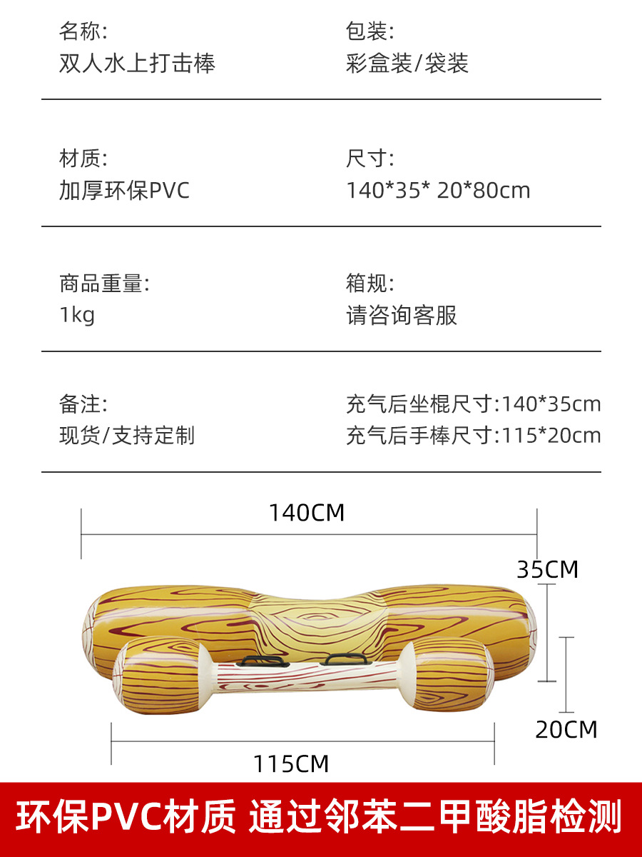 新品水上娱乐游戏充气双人打击棒游泳圈 坐棍2个手击棒2个1kg 投诉