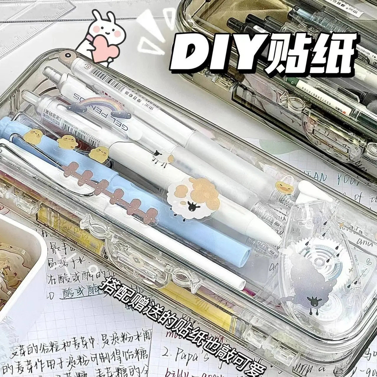 透明笔盒ins日系风大容量简约可爱中学生女孩高颜值文具盒铅笔盒