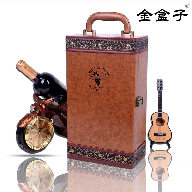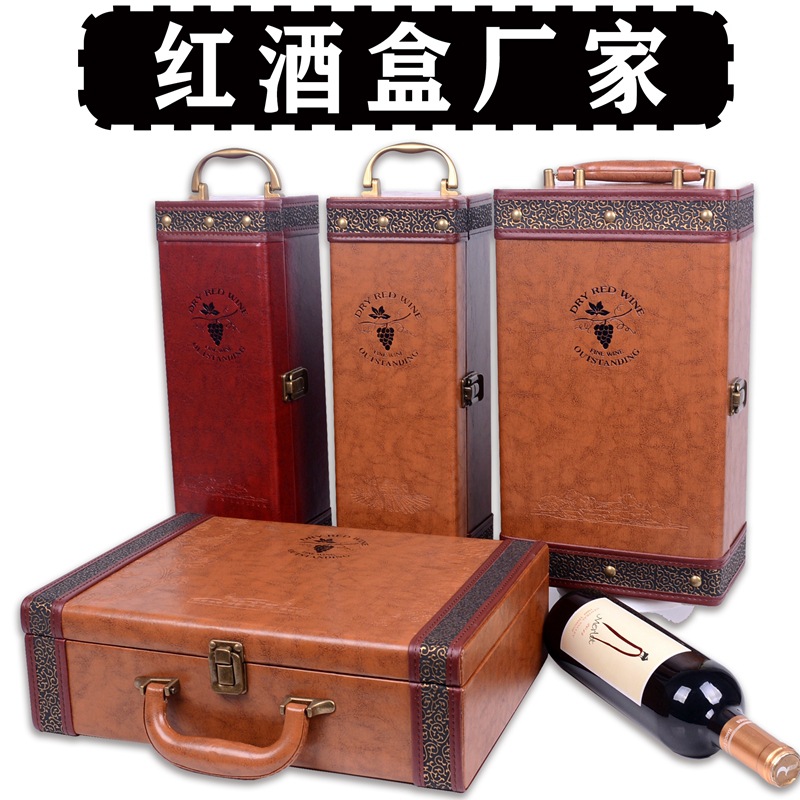 customized black brown Red Red Wine Gift Box spot single and double red wine box PU wine leather box packaging