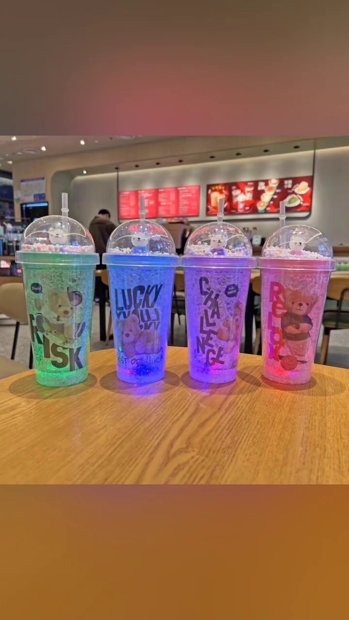 新款双层炸裂加厚制冷保冷杯 卡通吸管凝胶流沙冰夏日网红碎冰杯 投诉