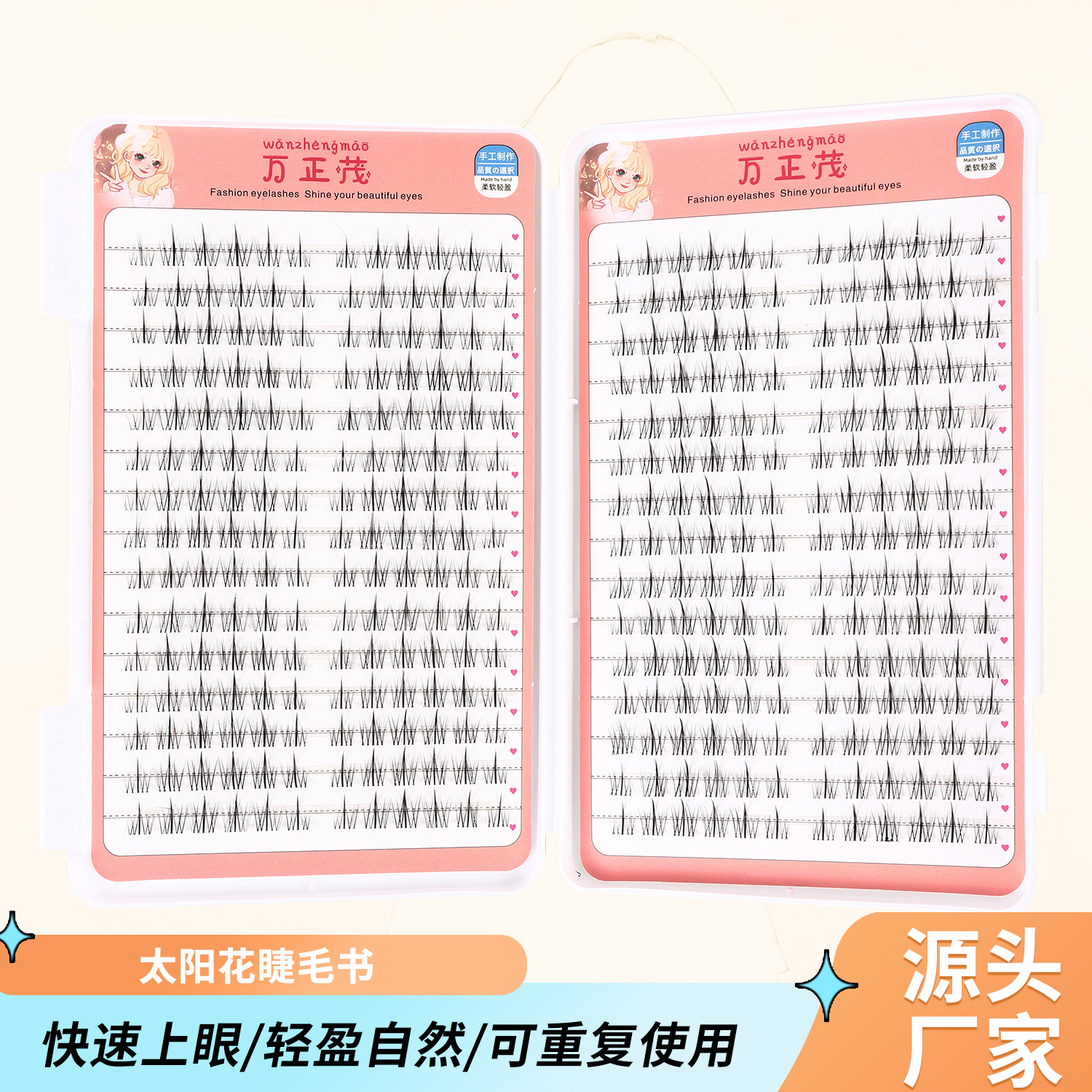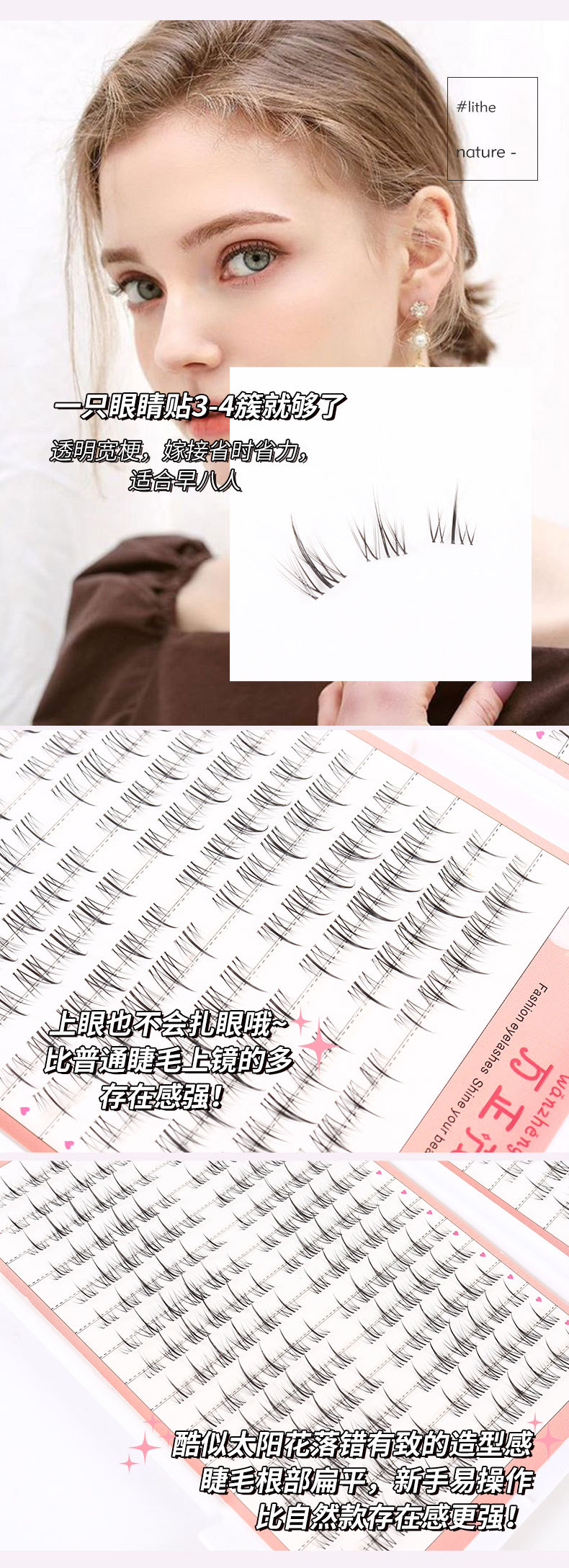 太阳花 睫毛书透明梗假睫毛 自然仿真三部曲单簇细梗自粘嫁接睫毛专供出口 English | 投诉