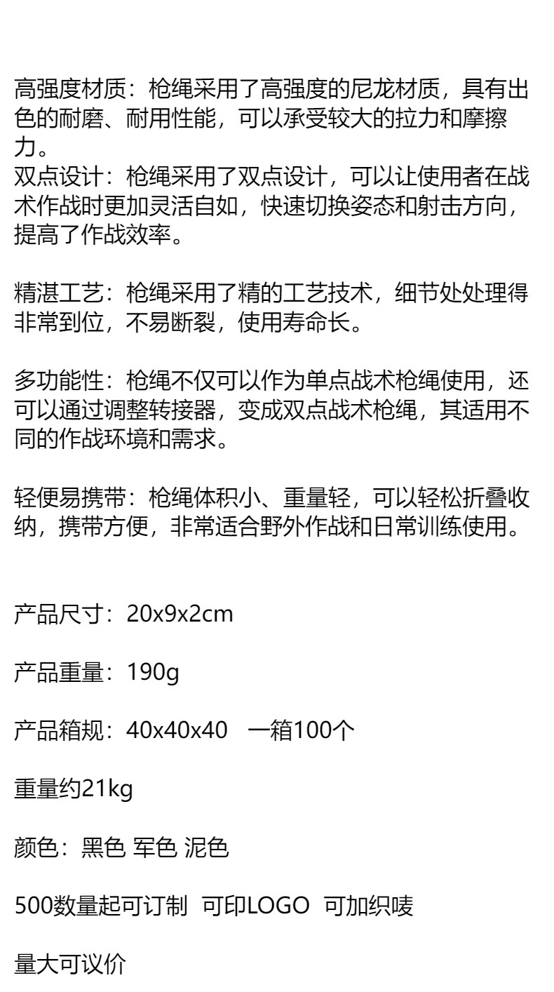MS2绳任务绳CS战术带背带挂绳背带绳多用途任务绳单双点 厂家直销 投诉