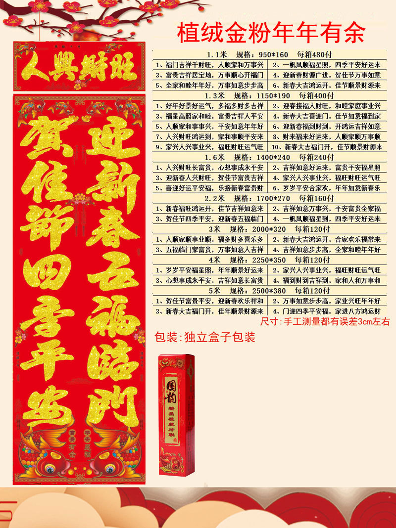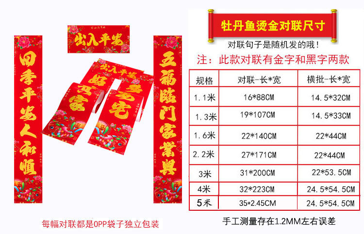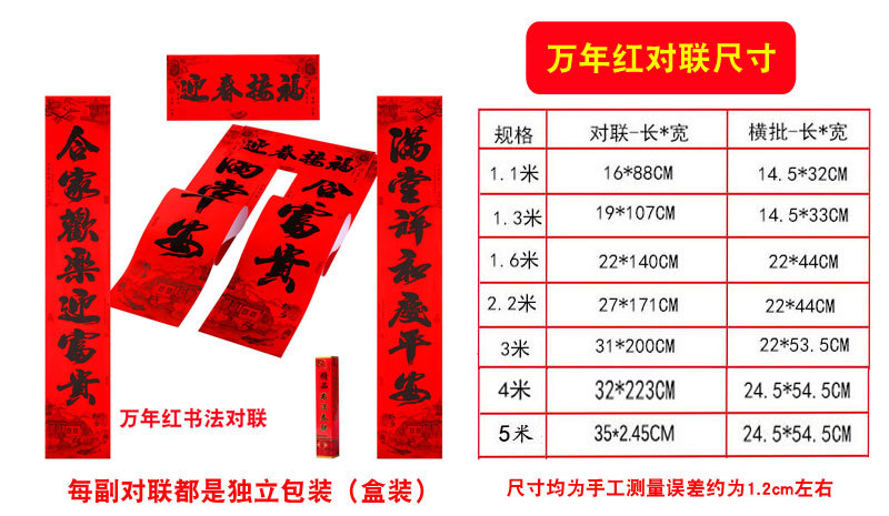 买家注意:春联规格和实际尺寸是不一样的 因为人工测量具体尺寸存在1-2厘米误差