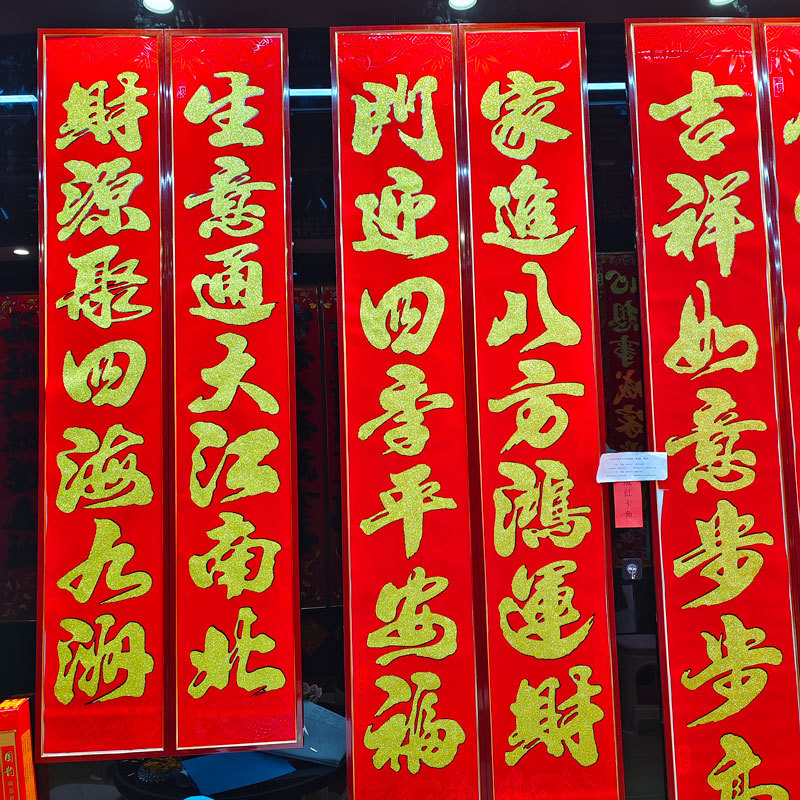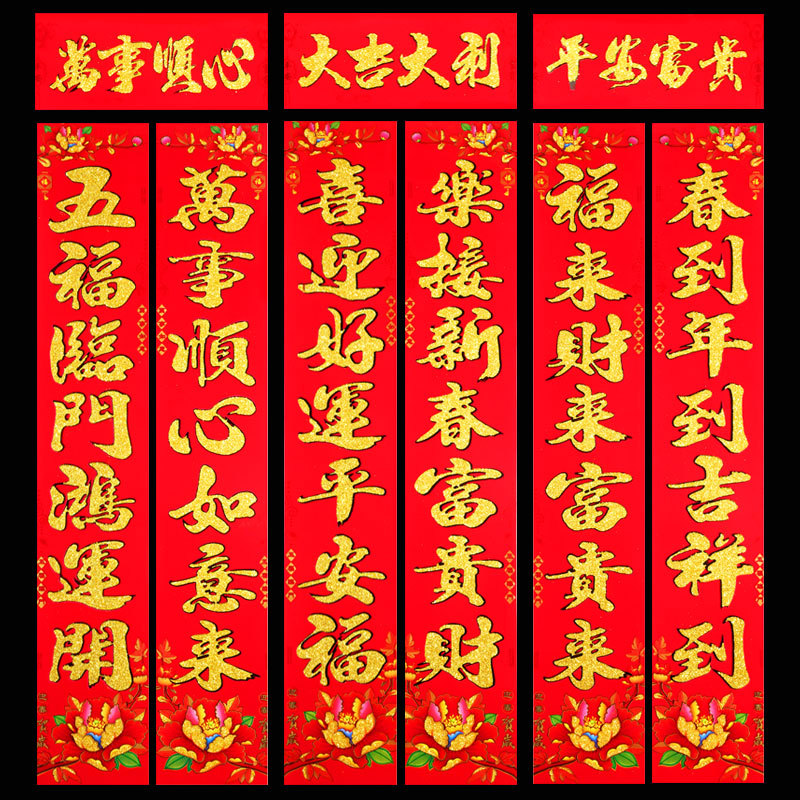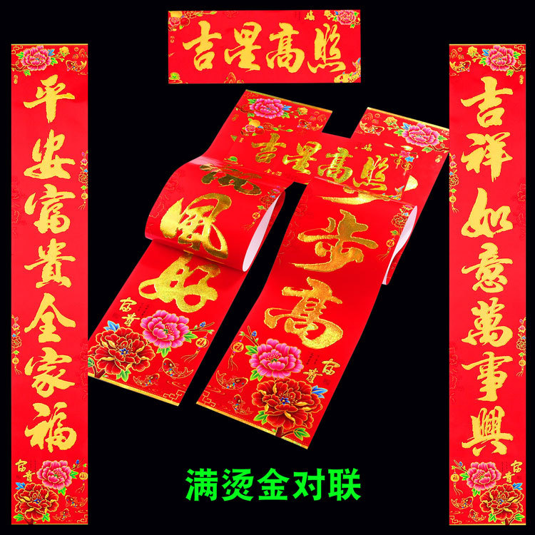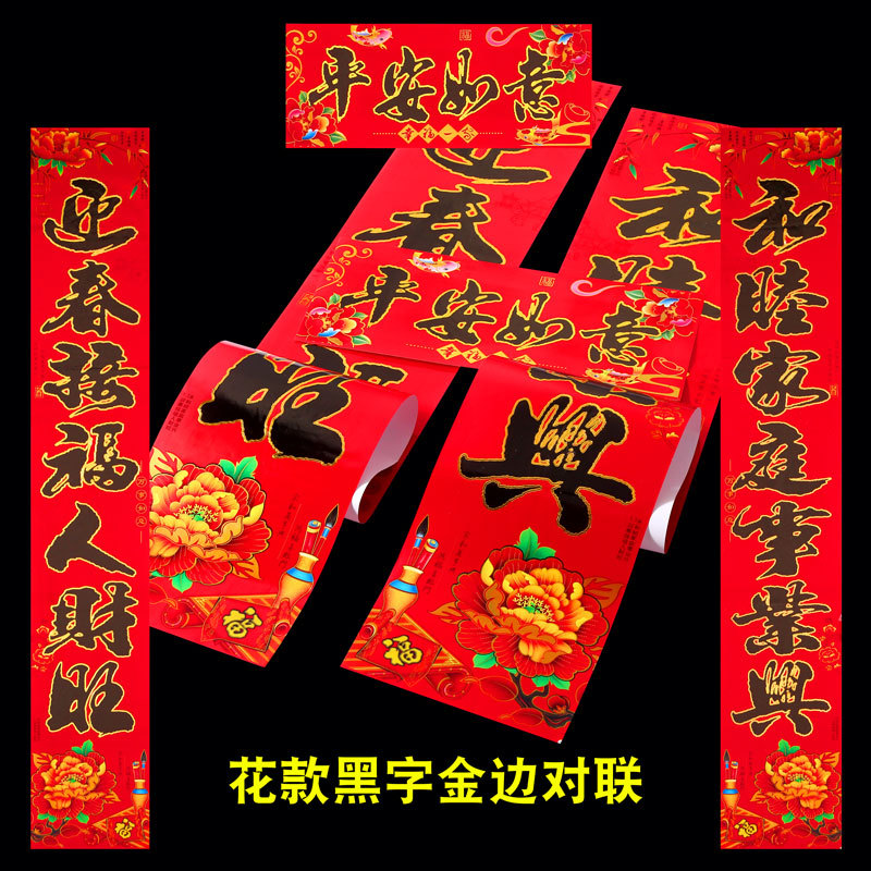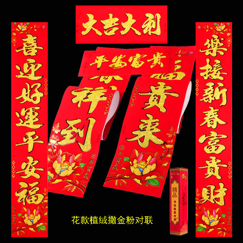 2026 马年新款铜版纸烫金对联 春节地摊年货金粉植绒春联厂家批发 English | 投诉