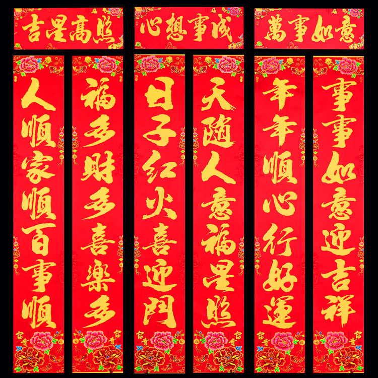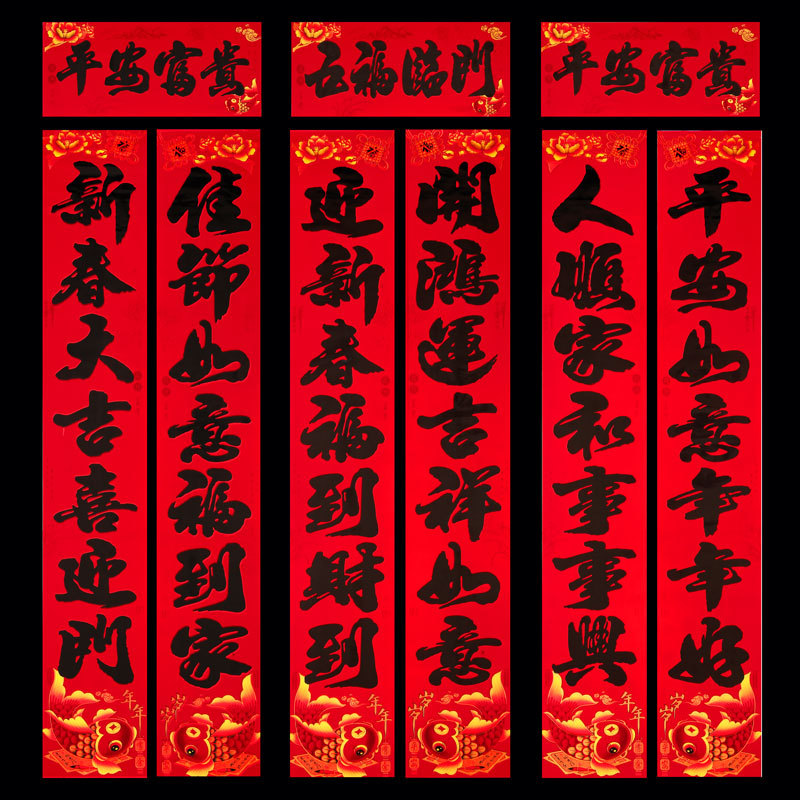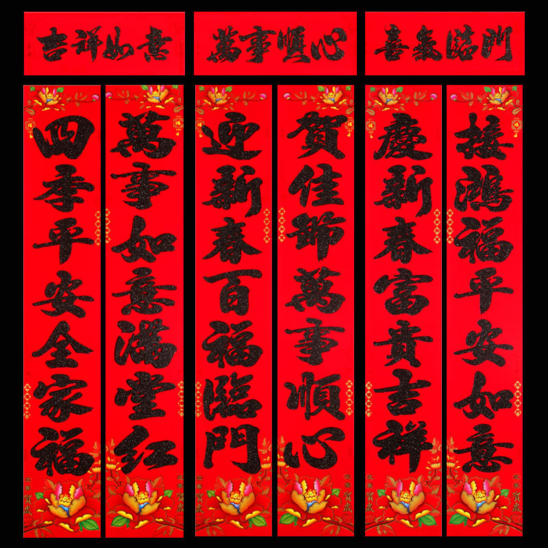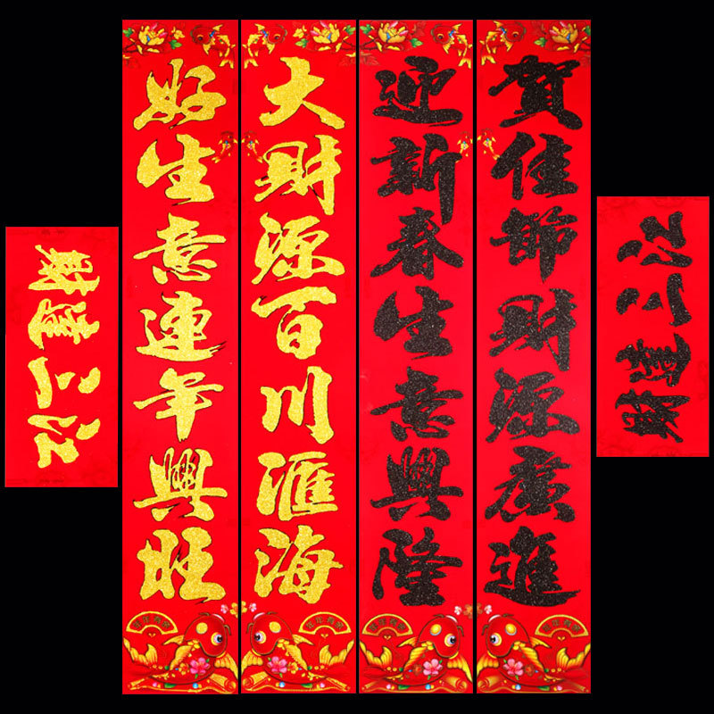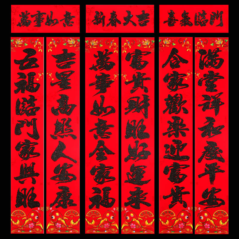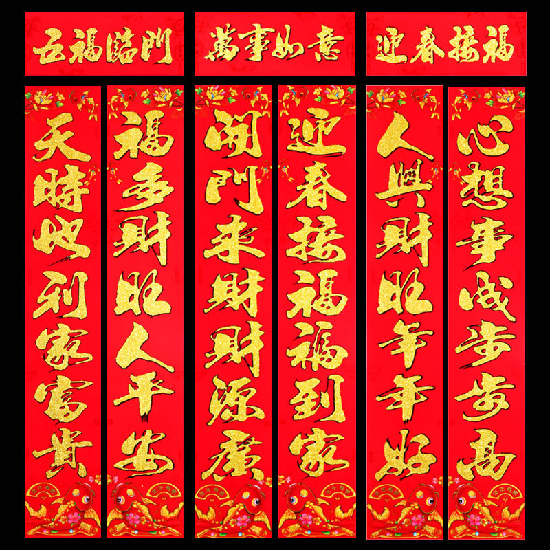 2026 马年新款铜版纸烫金对联 春节地摊年货金粉植绒春联厂家批发 English | 投诉