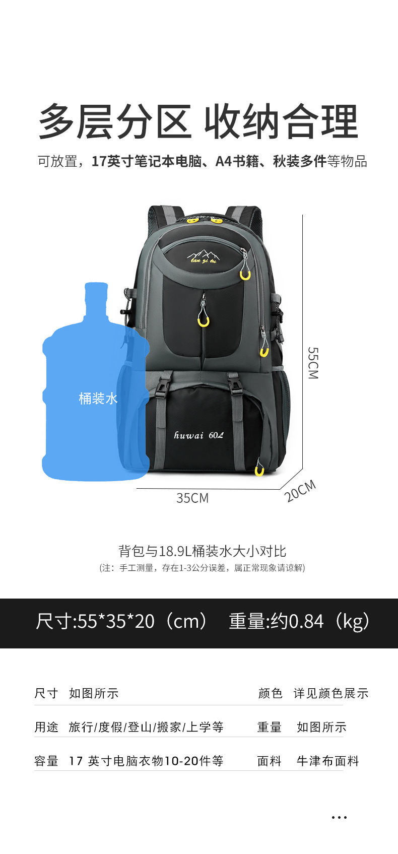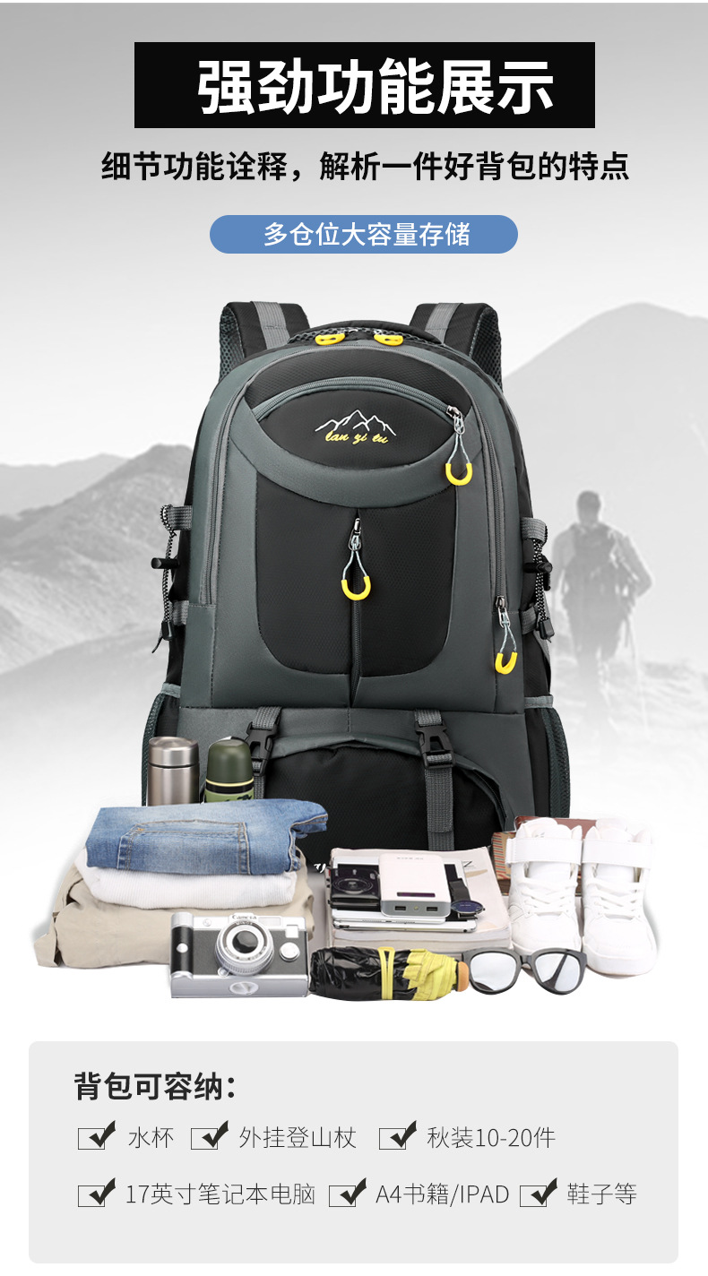 户外徒步防泼水轻便行李包旅行背包男双肩包大容量超大户外登山包 投诉