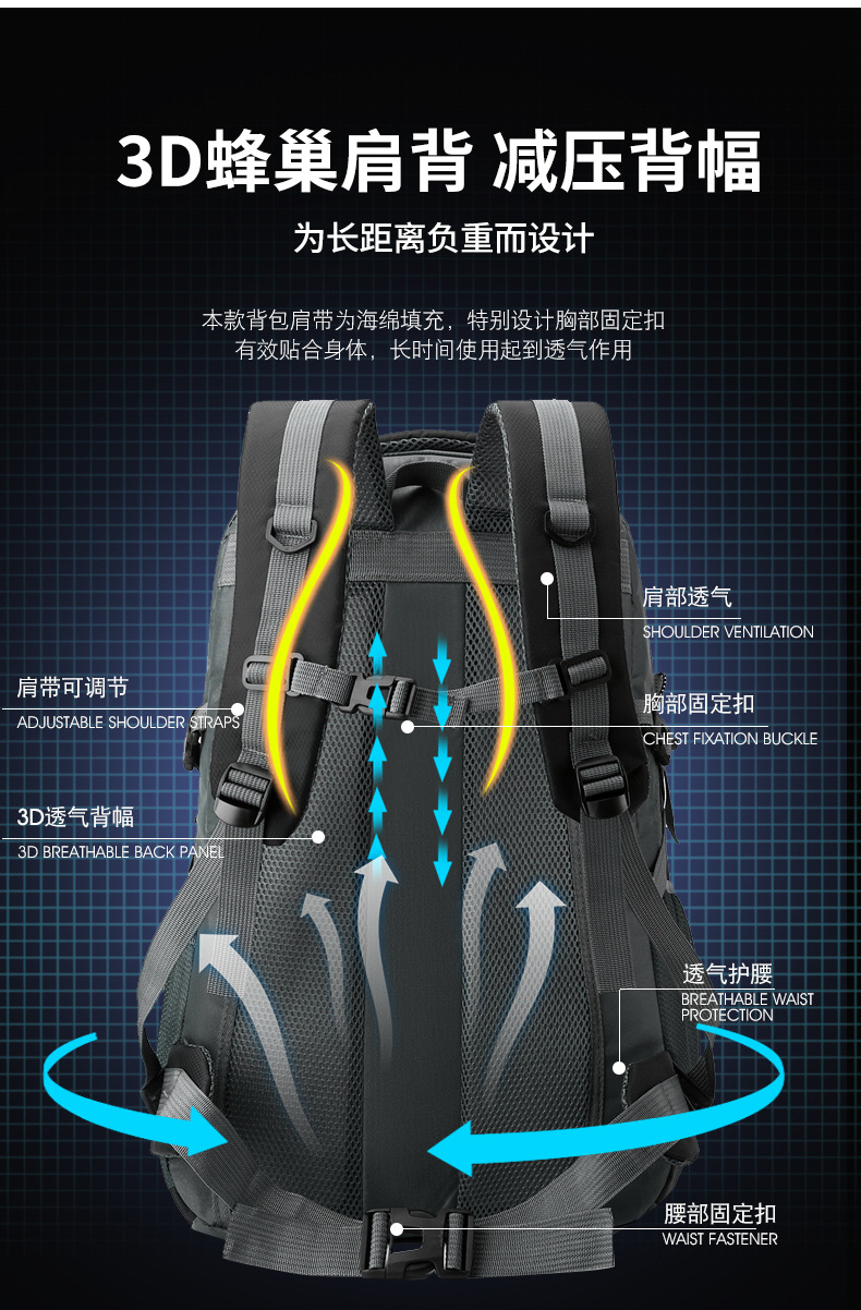 户外徒步防泼水轻便行李包旅行背包男双肩包大容量超大户外登山包