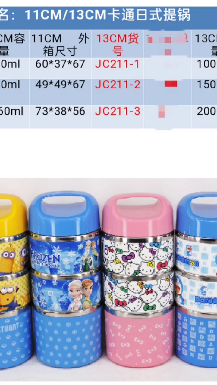 不锈钢卡通儿童乐园旋转式锣纹提锅 二层三层手提小清新潮流饭盒 投诉