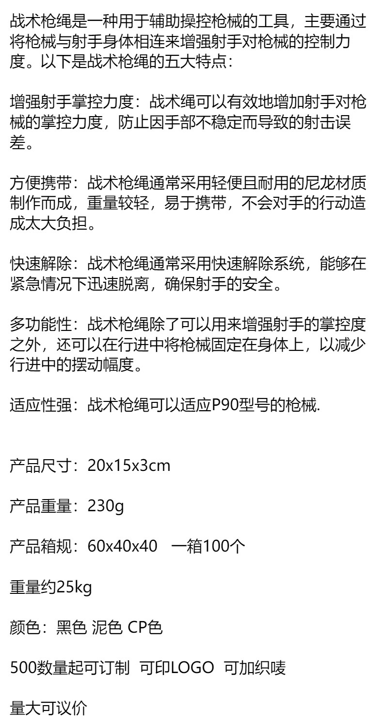 厂家直销户外多功能战术背心挂带 P90悬挂枪绳 五点式安全绳现货 投诉