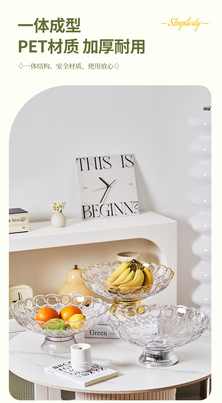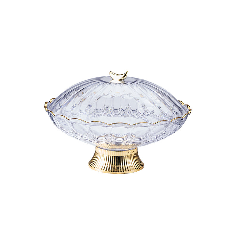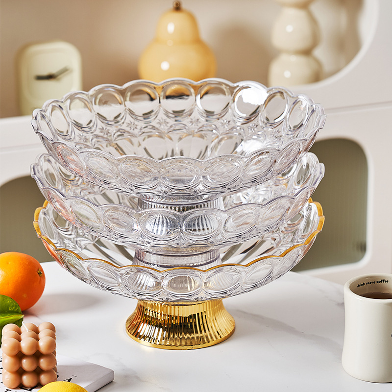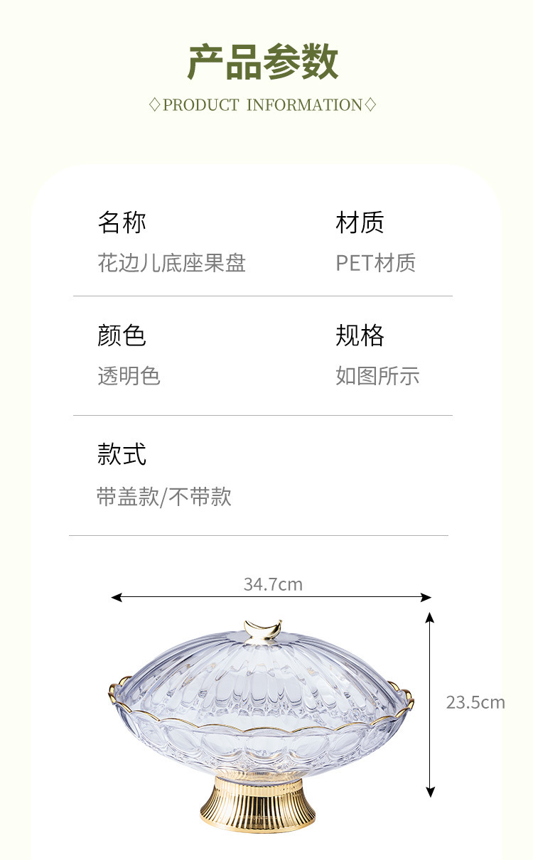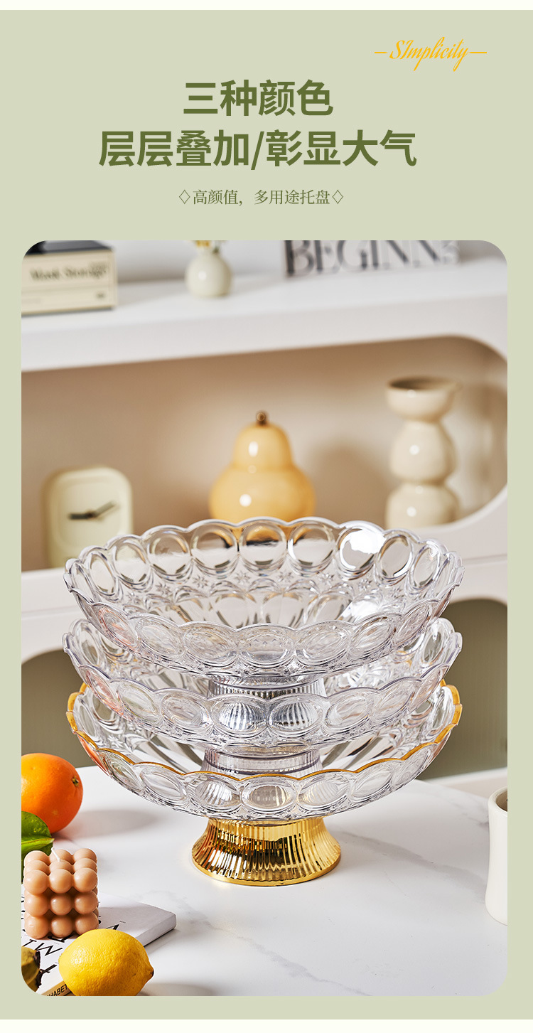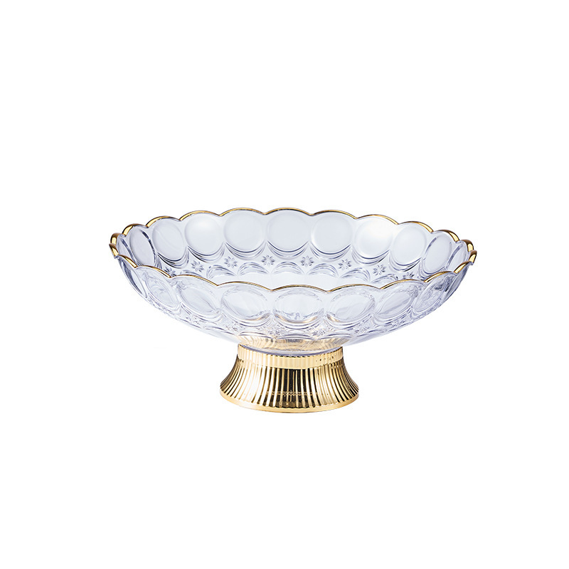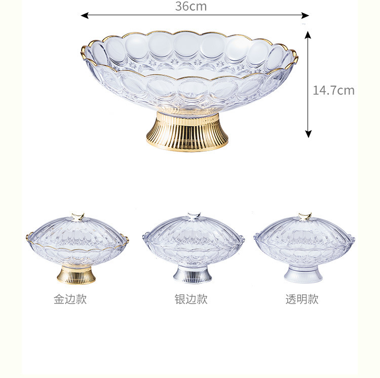 中东阿拉伯风格透明PET果盘奢华金边带底座水果盘会所客厅零食盘 English | 投诉