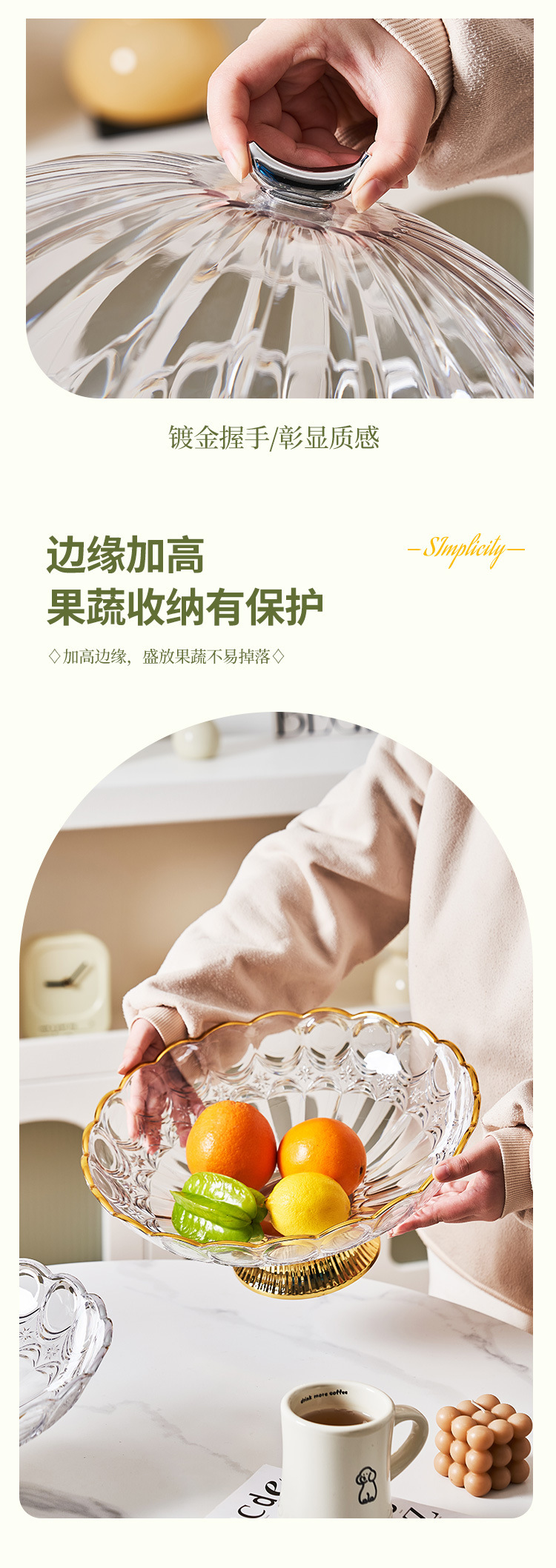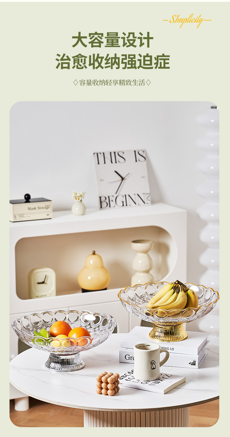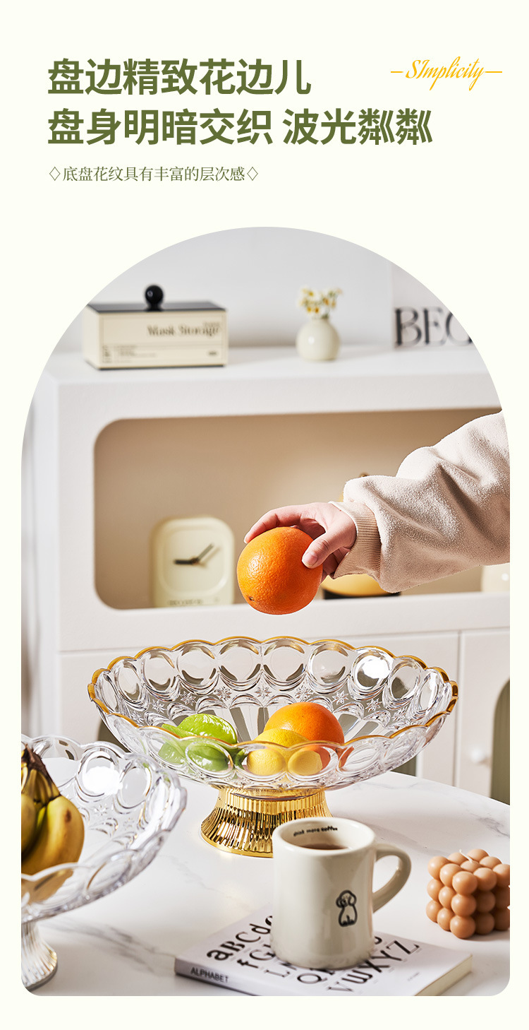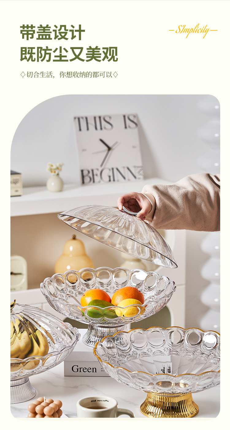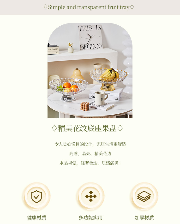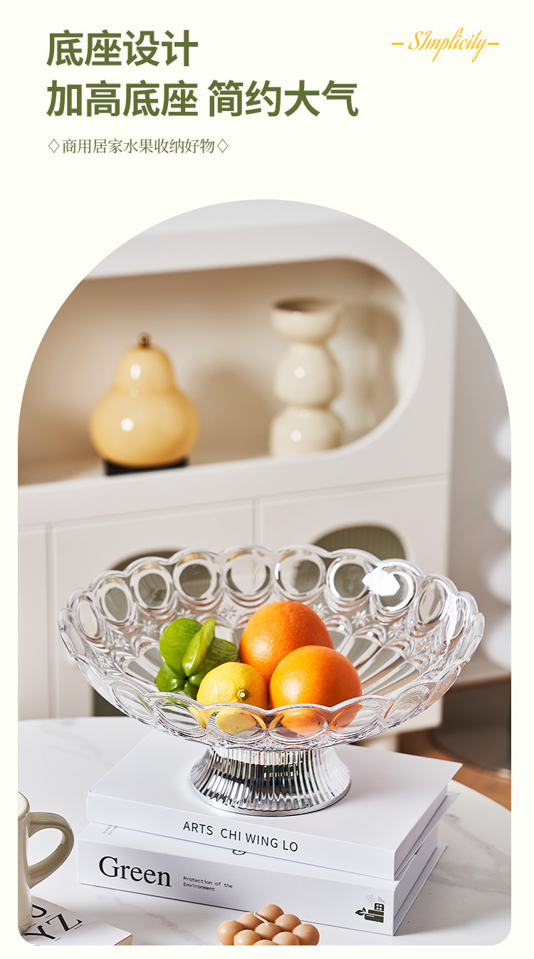 中东阿拉伯风格透明PET果盘奢华金边带底座水果盘会所客厅零食盘 English | 投诉