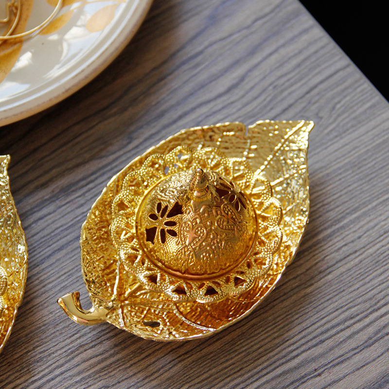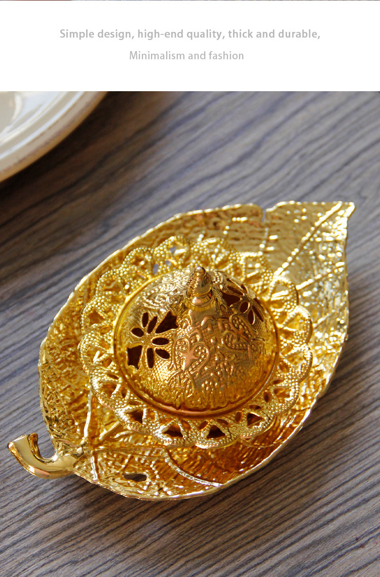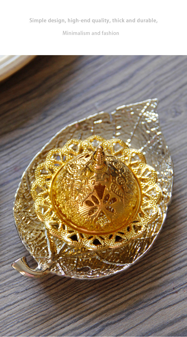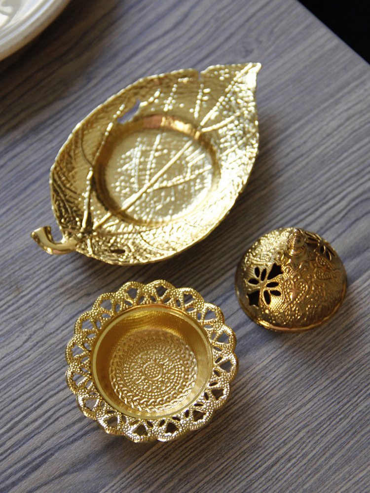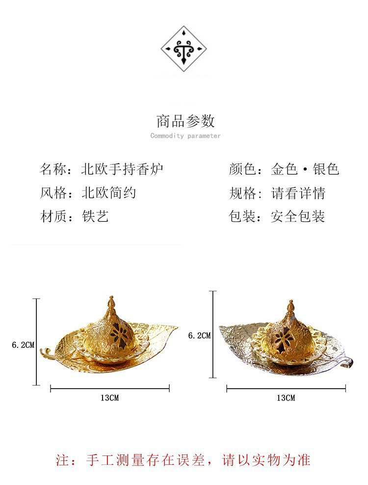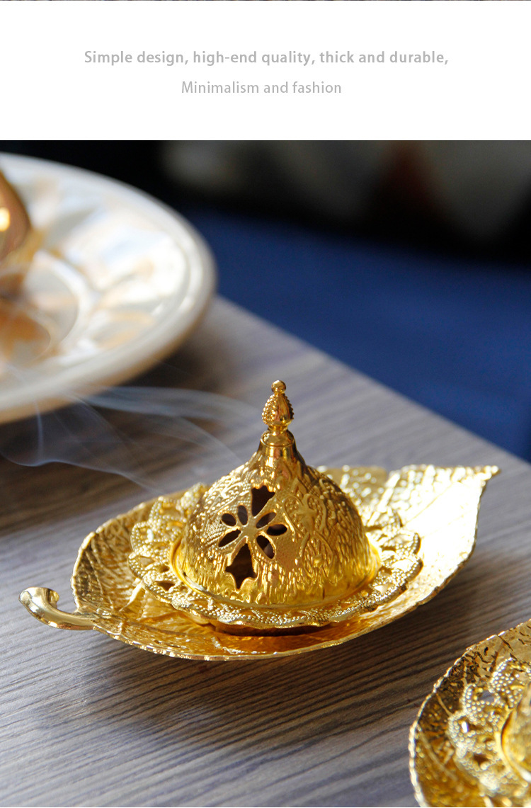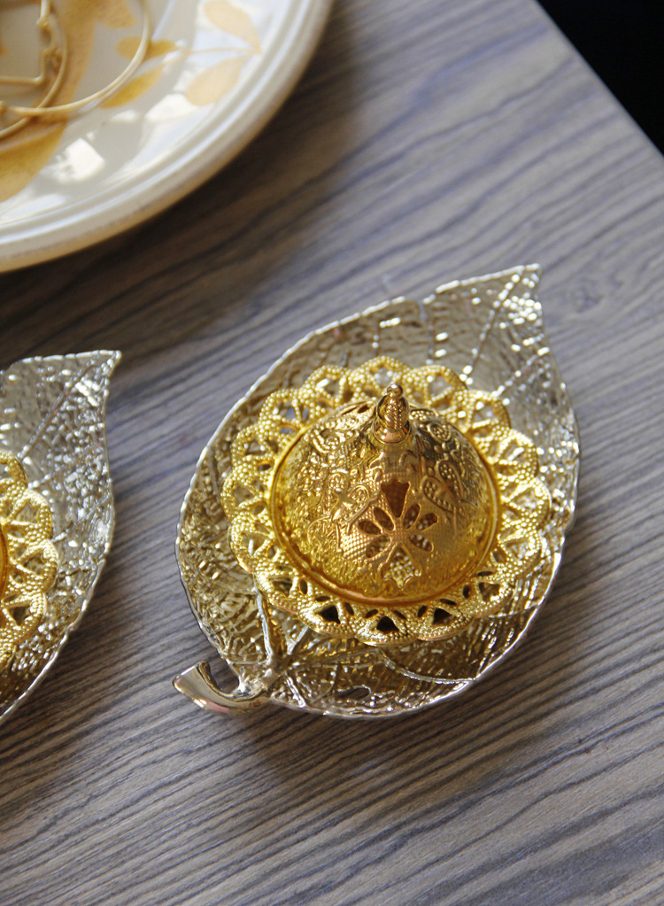 中东阿拉伯手持香炉金色叶子托盘杯垫加金色塔顶香炉家居摆件 English | 投诉