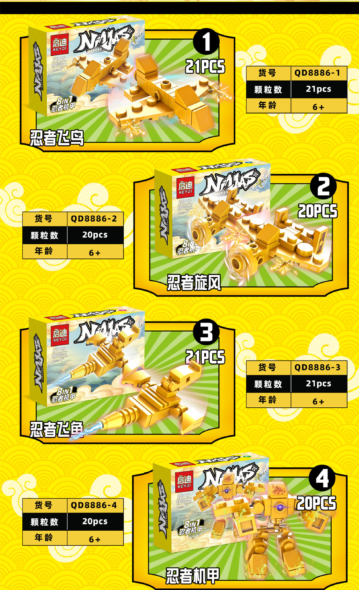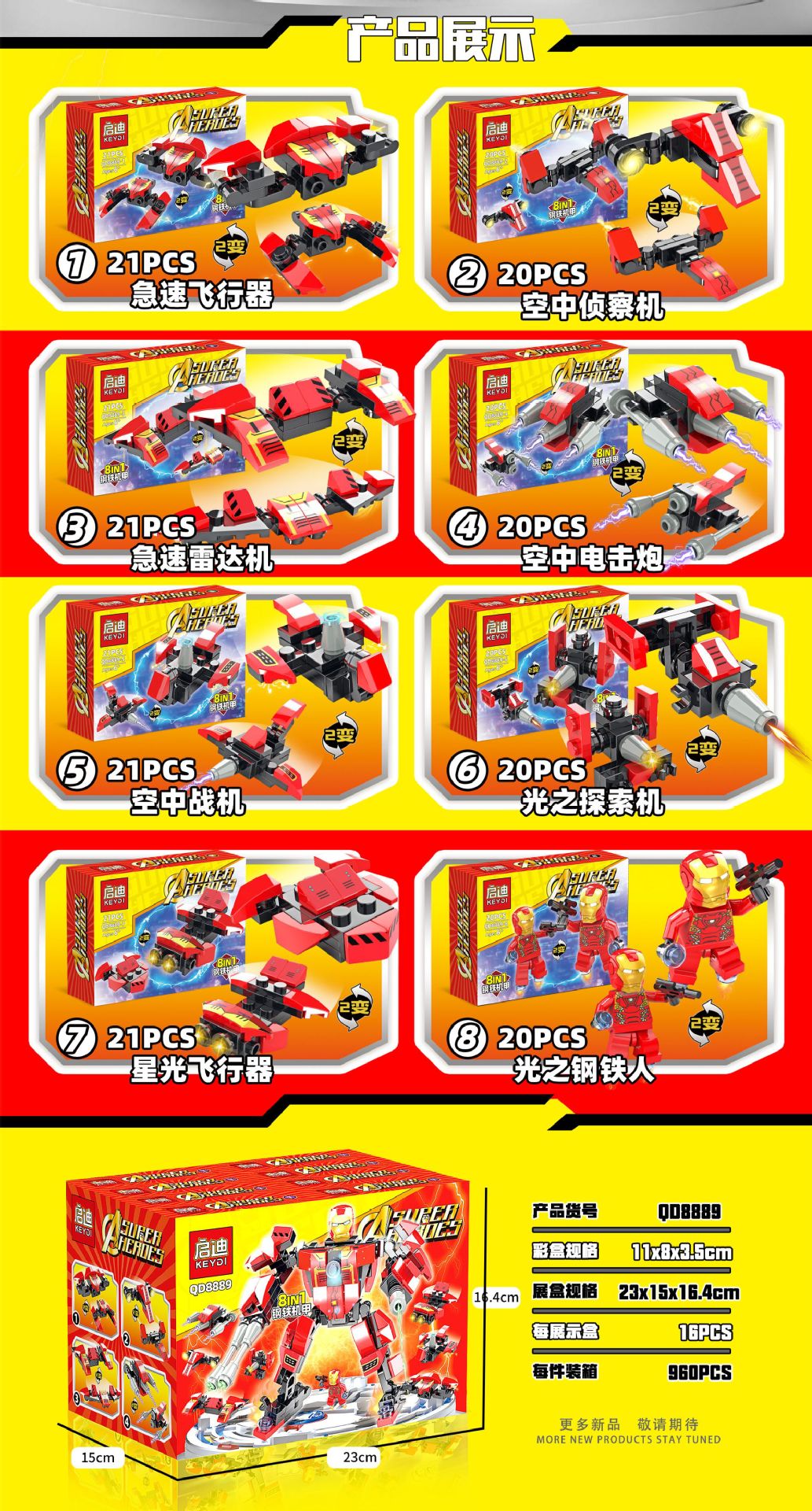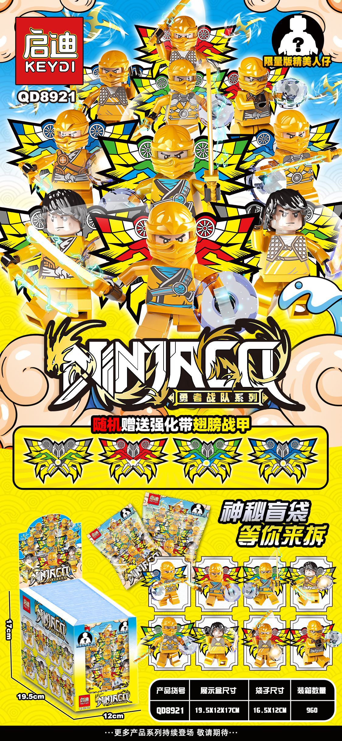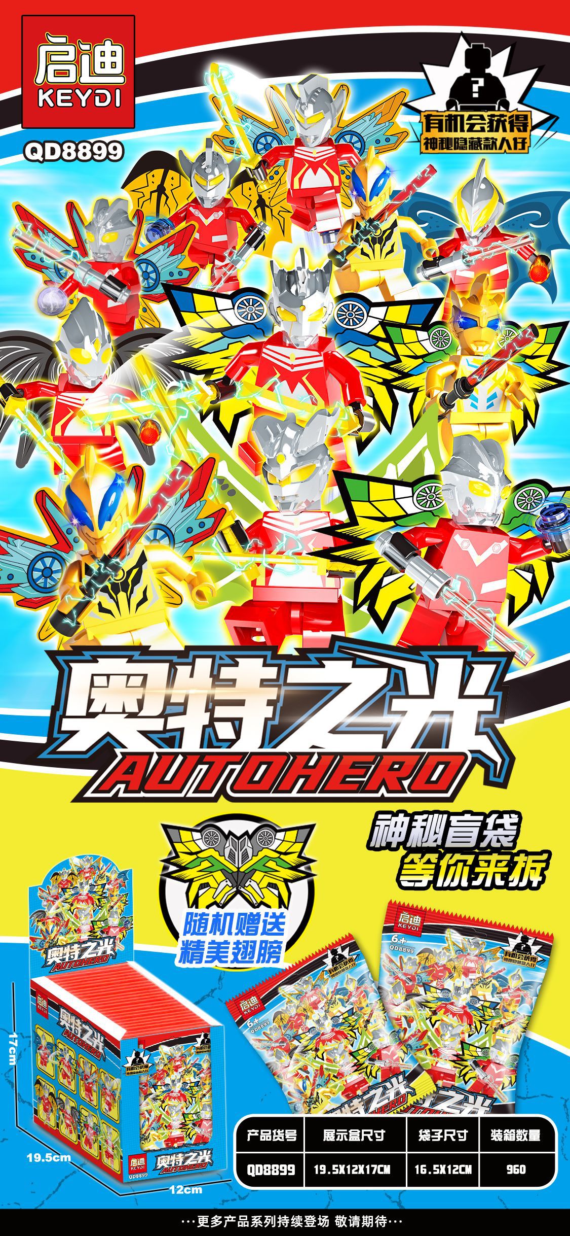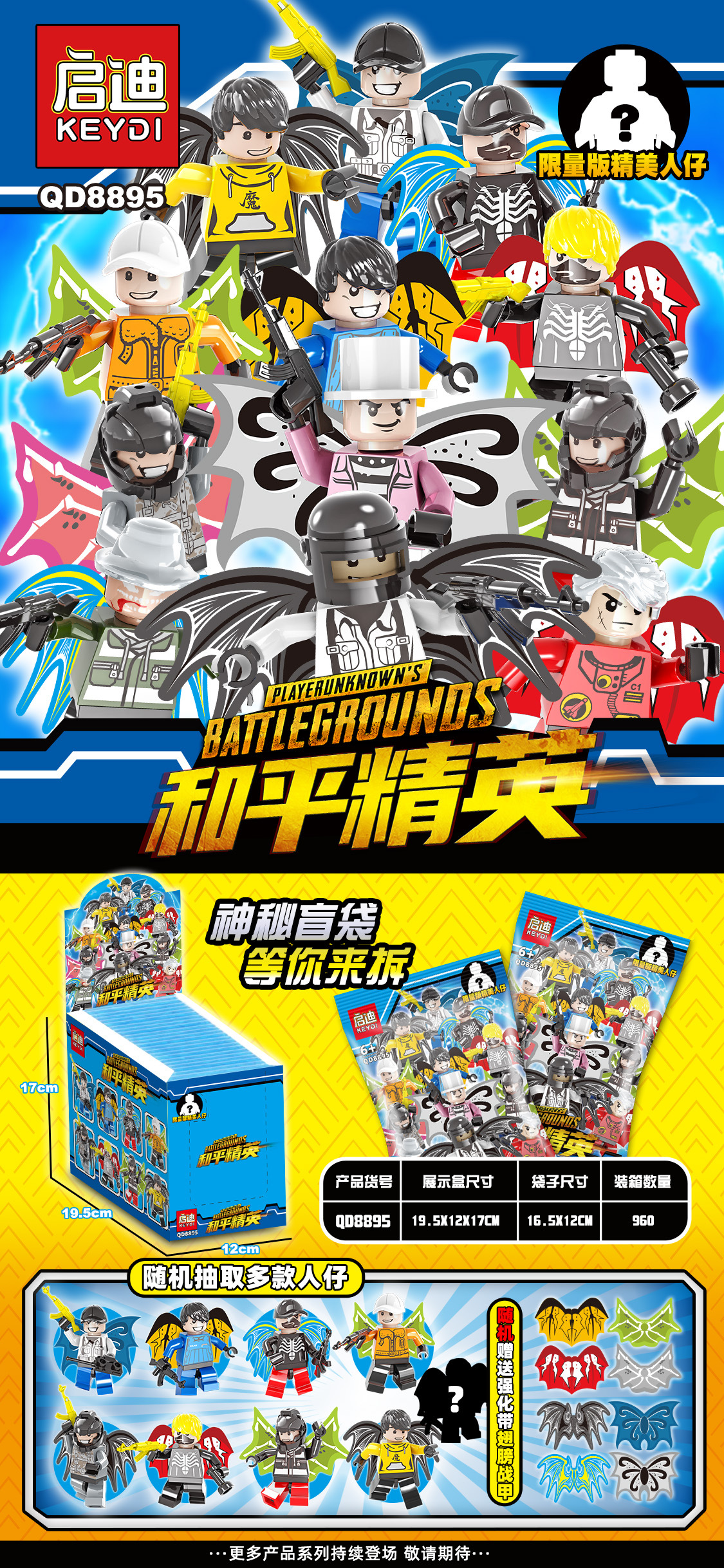 盒装单个系列8款可合体,拍8的复数,16小盒装一展示盒,装箱960盒。