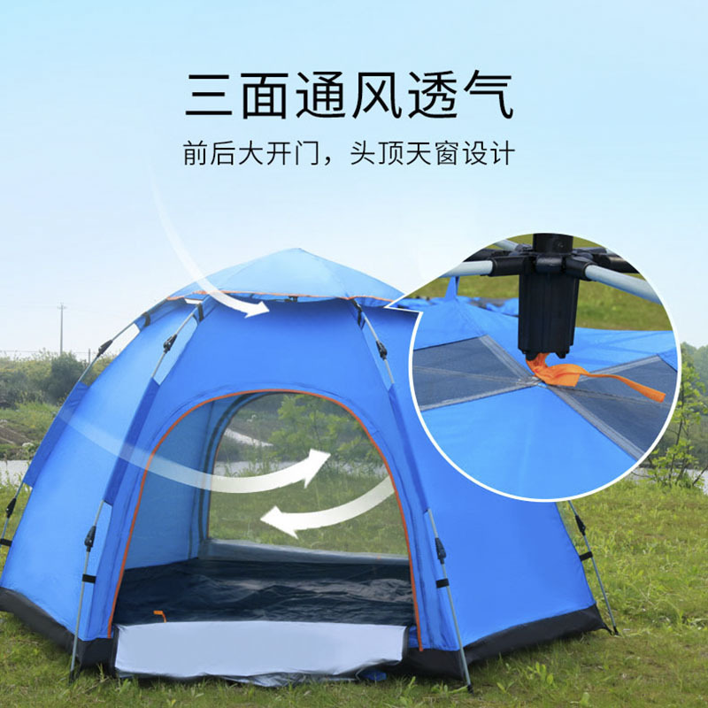 全自动帐篷 多人户外3-5人六角帐篷户外露营野营防雨弹簧