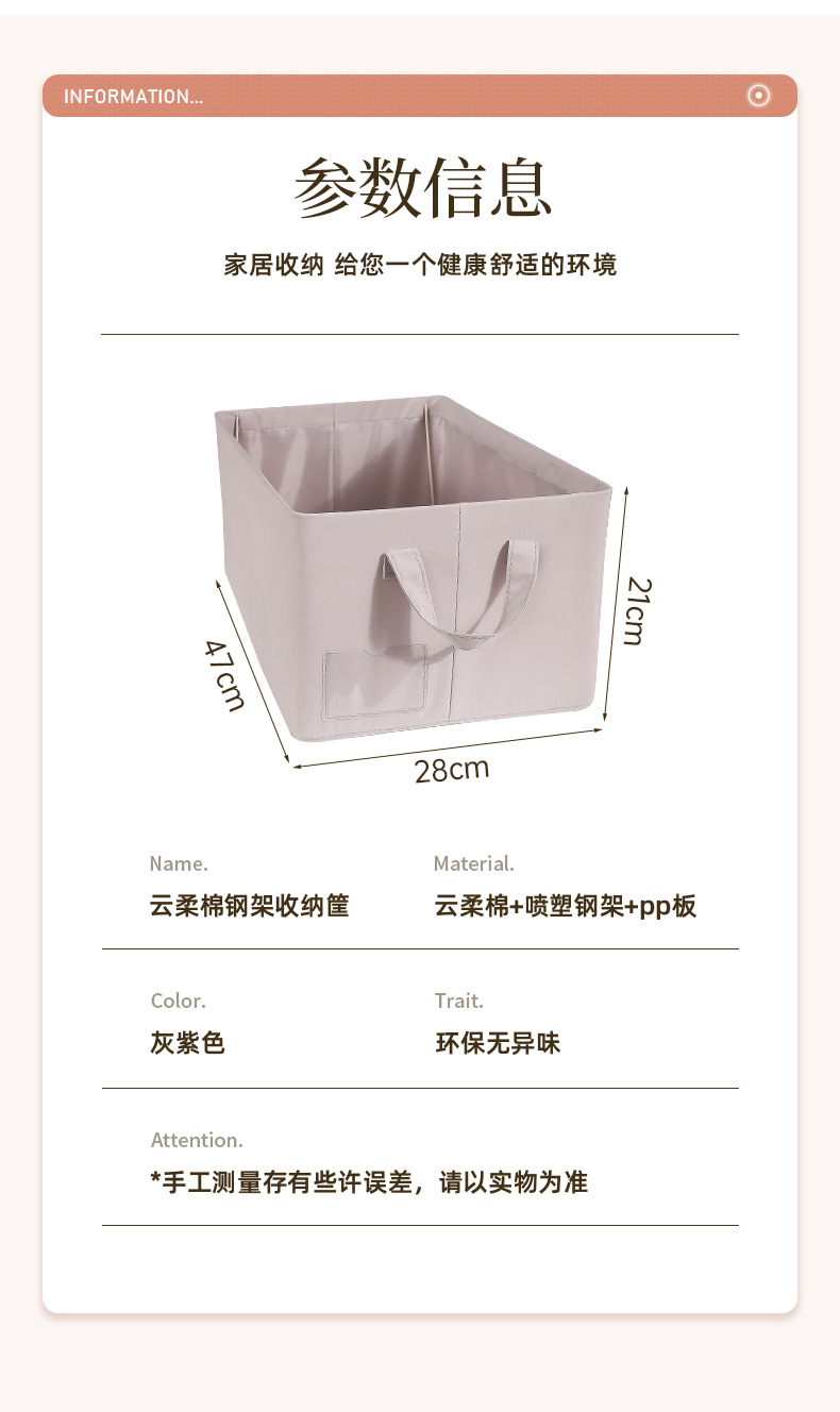 云柔棉收纳盒 可水洗衣服收纳钢架筐 衣物整理盒家居裤子收纳筐 English | 投诉