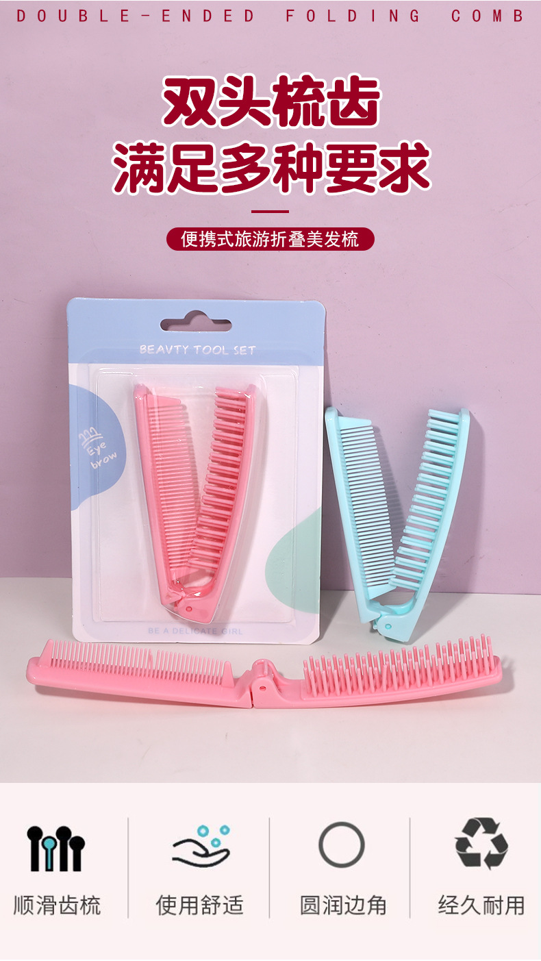 双头折叠旅行梳批发 便携式直发梳批发 美发塑料梳子顺发梳直发梳
