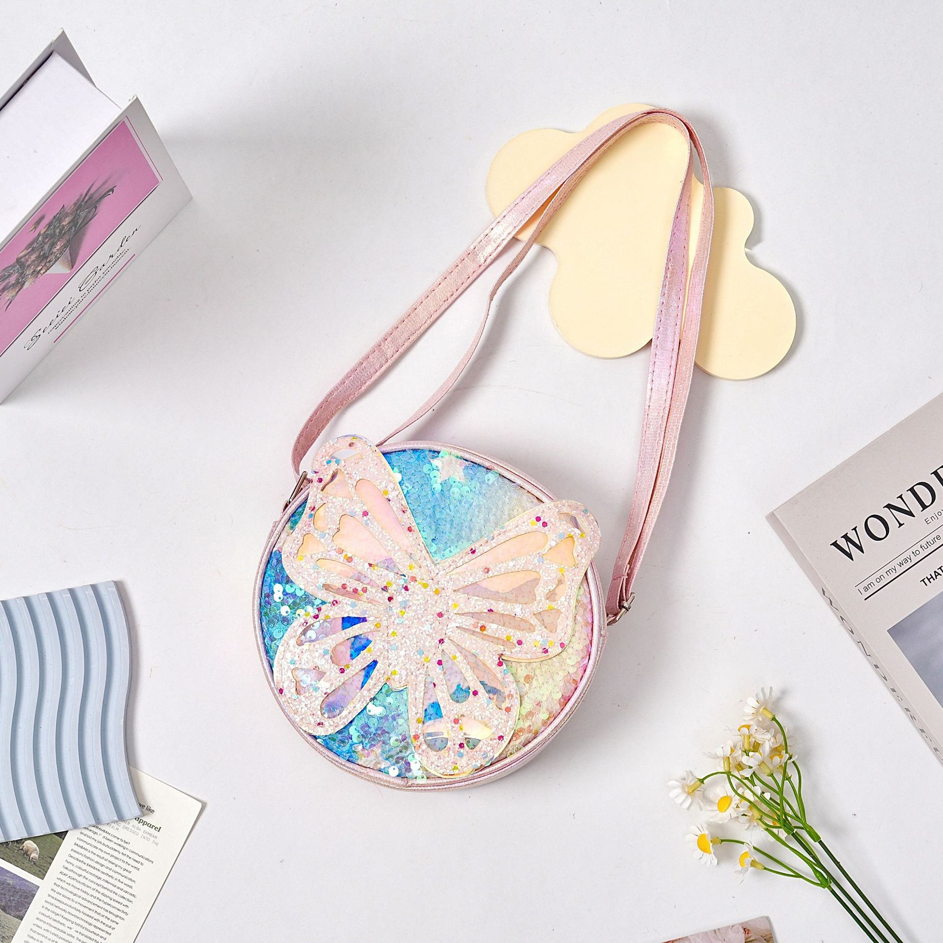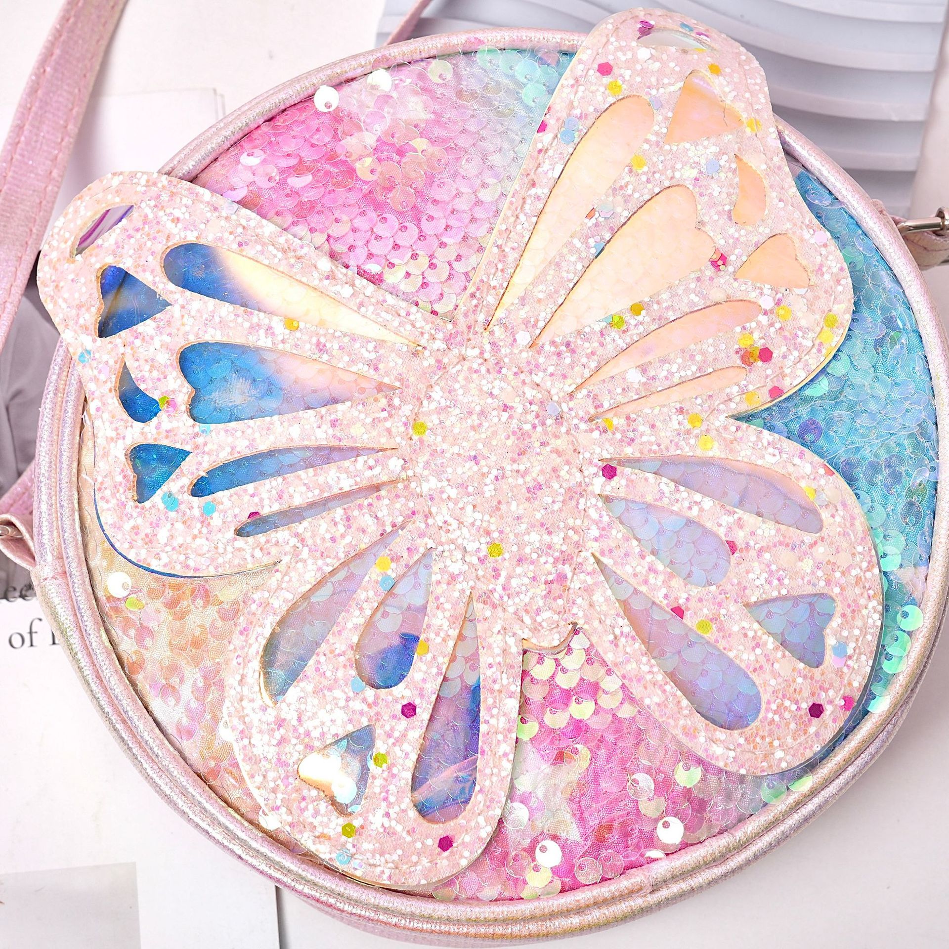 厂家直销女童小包包蝴蝶韩版时尚亮片公主小挎包女宝宝零钱包小包
