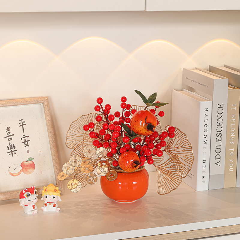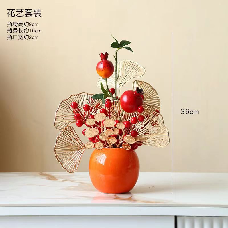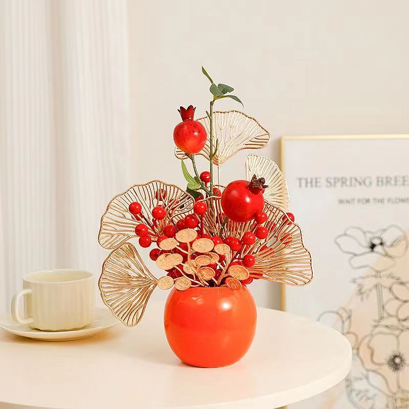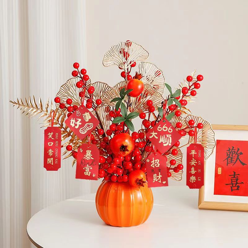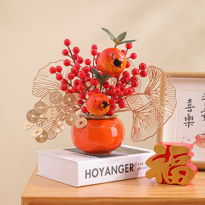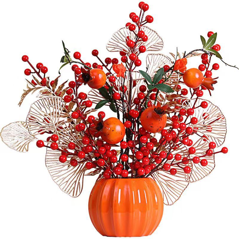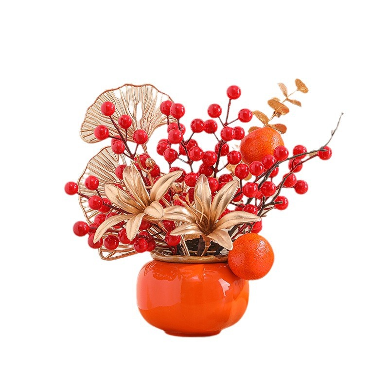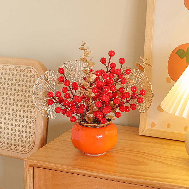 创意柿柿如意罐子红果仿真花摆件新房家居客厅发财果电视柜装饰品