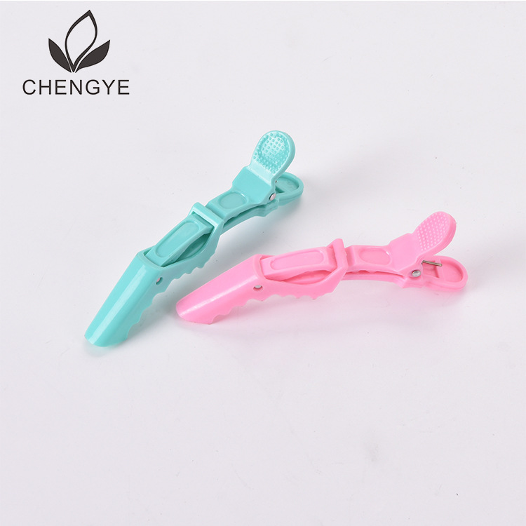 名称:CY-C002彩色鳄鱼夹 种类:美发夹子 尺寸:12cm 材质:塑料 适合场景:发廊 可定制客人logo及自定义颜色!