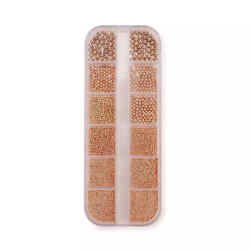 跨境新款美甲饰品大小钢珠12格长条盒装金色银色混装金属指甲套装 English | 投诉