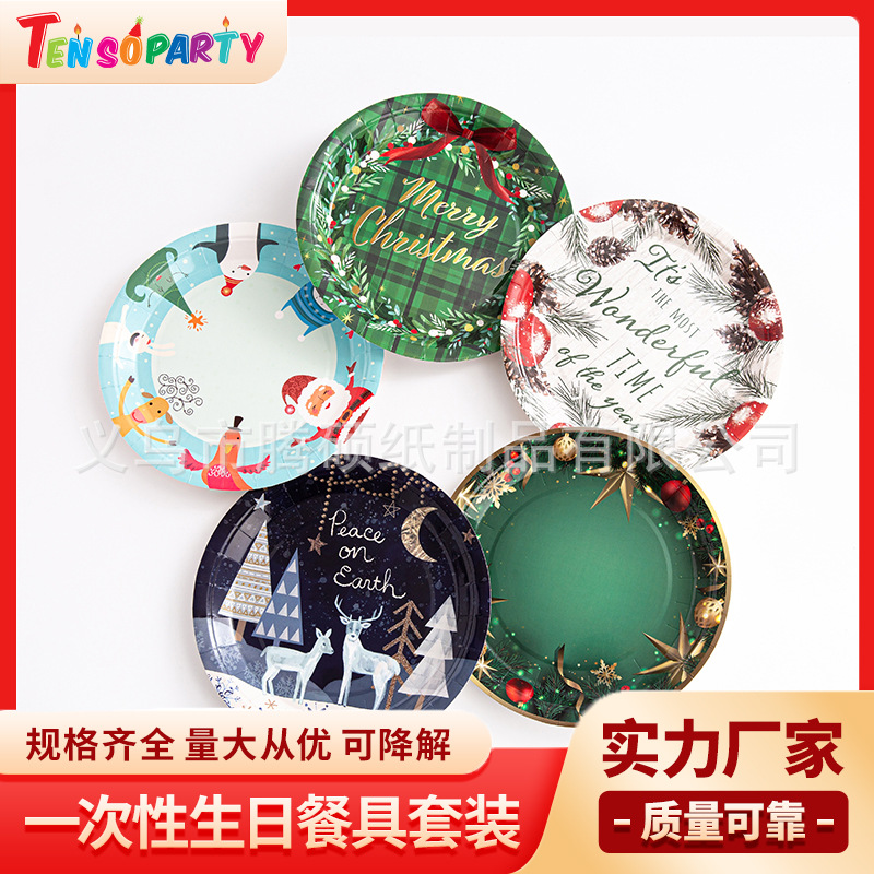 圣诞节生日派对用品蛋糕盘子一次性麋鹿纸盘碗盘餐具野餐盘 English | 投诉