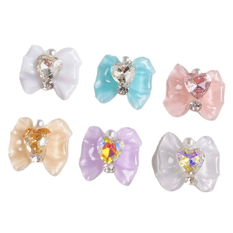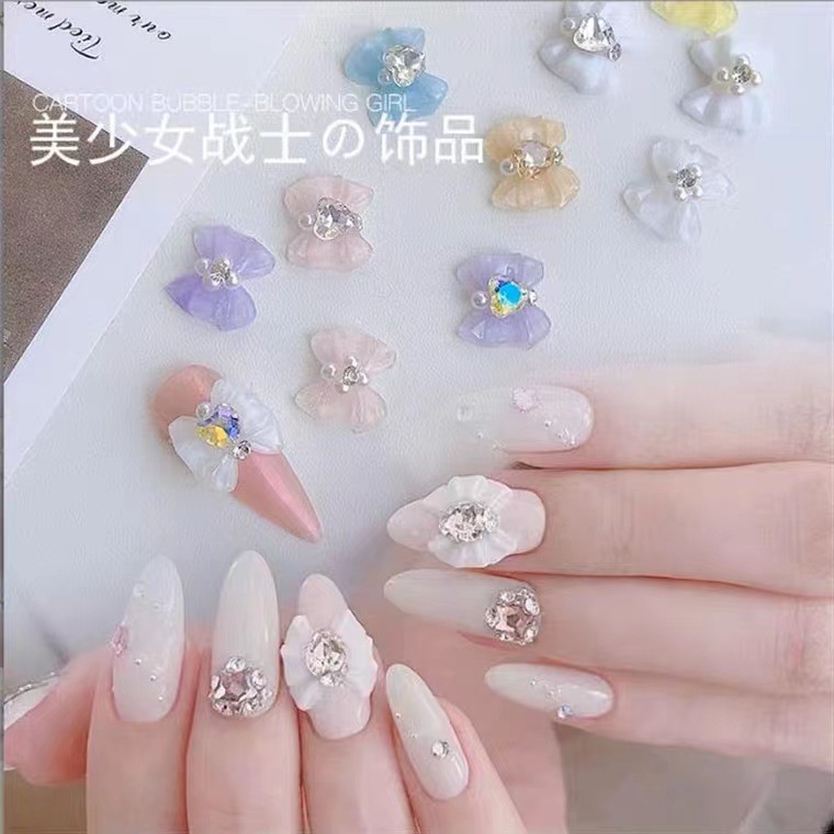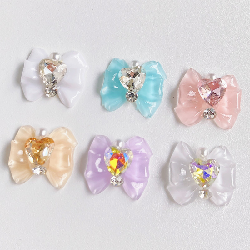 美少女战士蝴蝶结美甲饰品2022新款爱心钻白色树脂冰透蝴蝶结配饰 English | 投诉