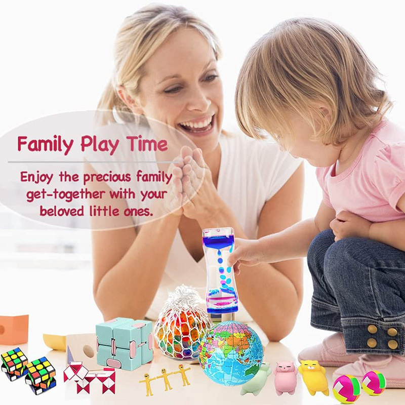 跨境44件解压套装计时油漏魔方毛球玩具男女孩派对生日礼物现货