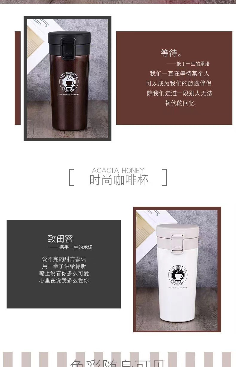 外贸爆款304不锈钢咖啡杯商务办公室礼品杯保温保冷马克杯随手杯 English | 投诉
