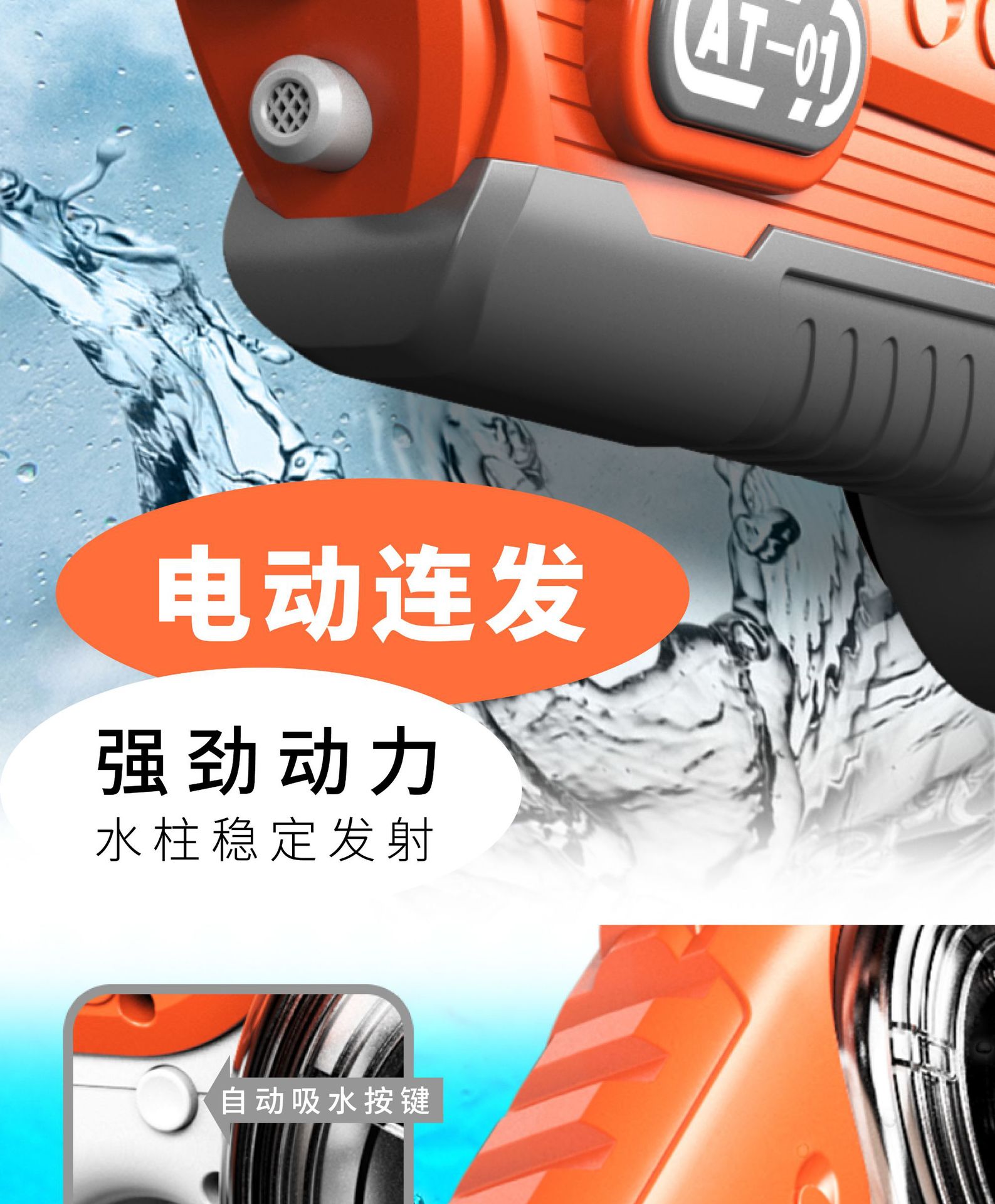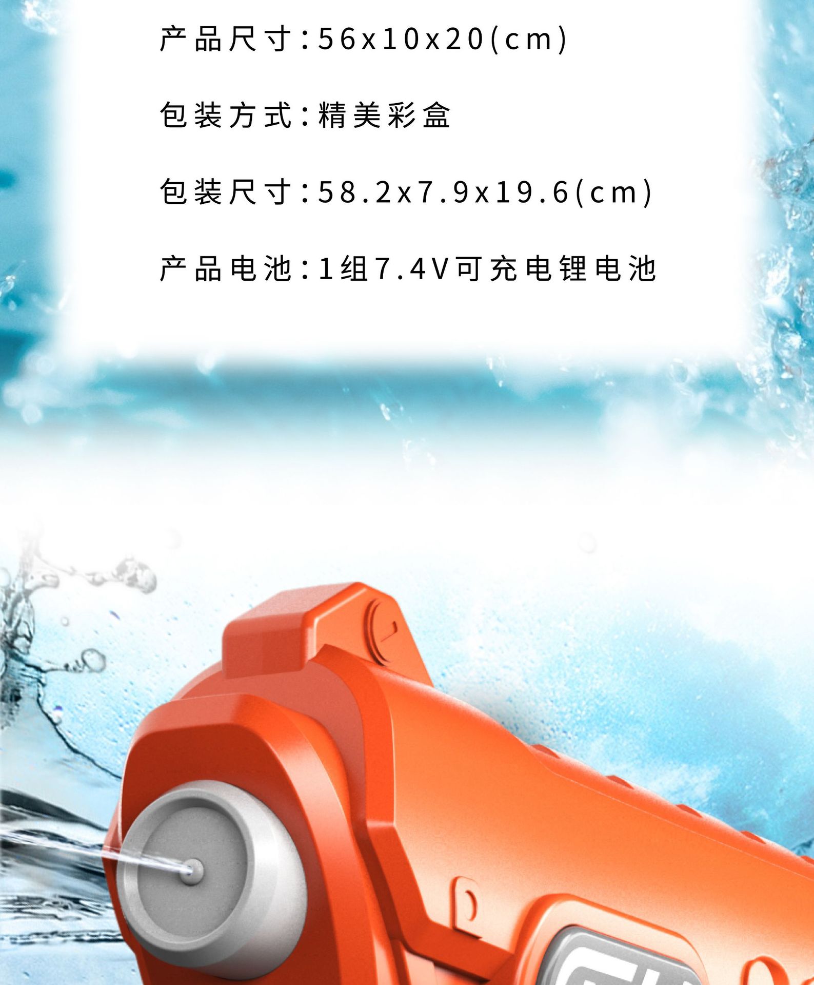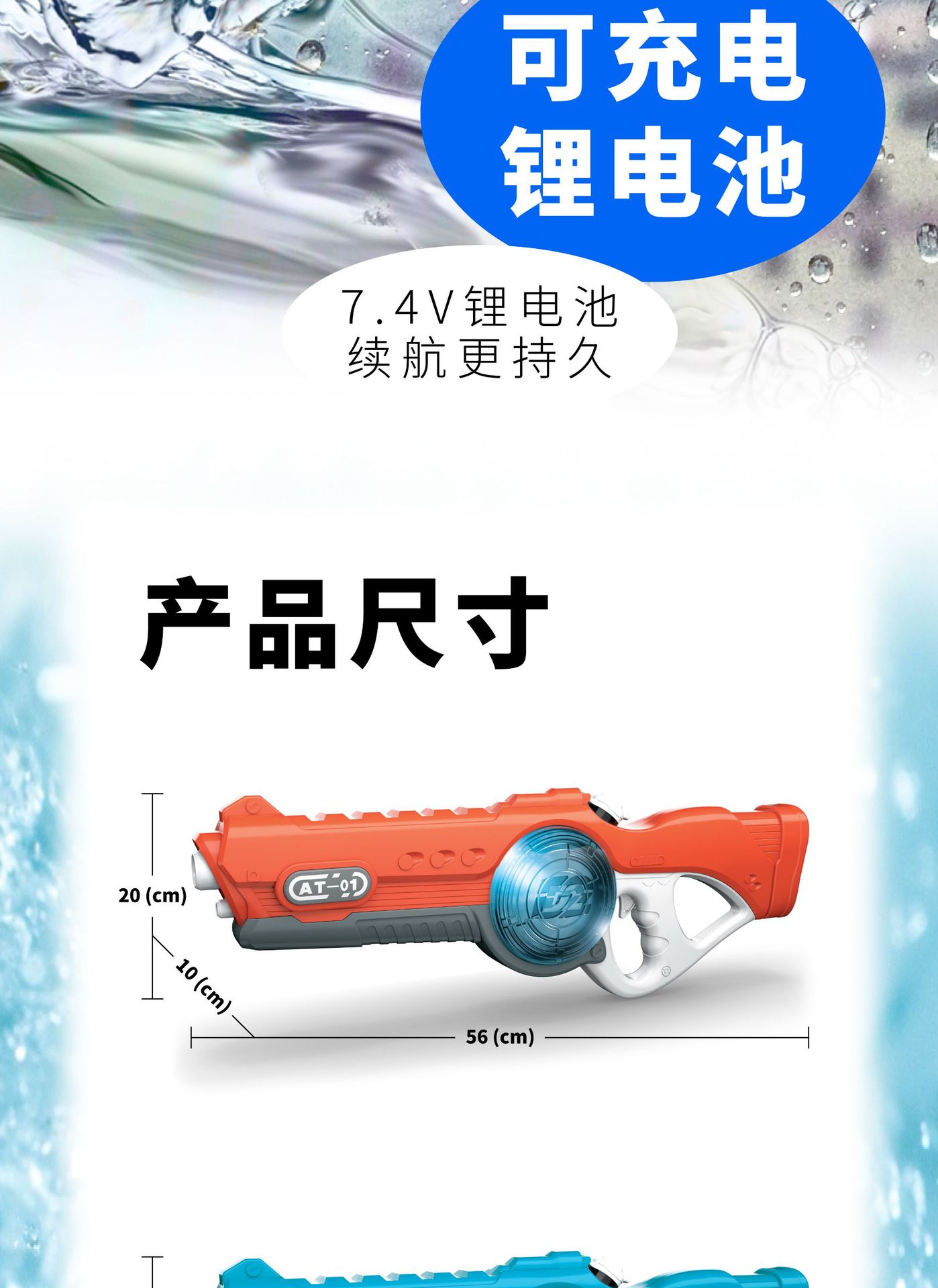 跨境夏季全自动吸水连发充电电动灯光水枪呲水大容量戏水儿童玩具 English | 投诉