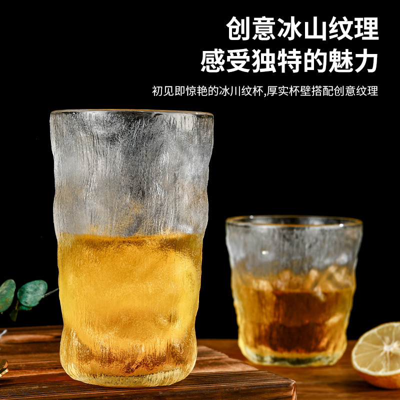 批发网红冰川杯玻璃水杯磨砂杯子餐厅家用花茶冷饮咖啡啤酒杯